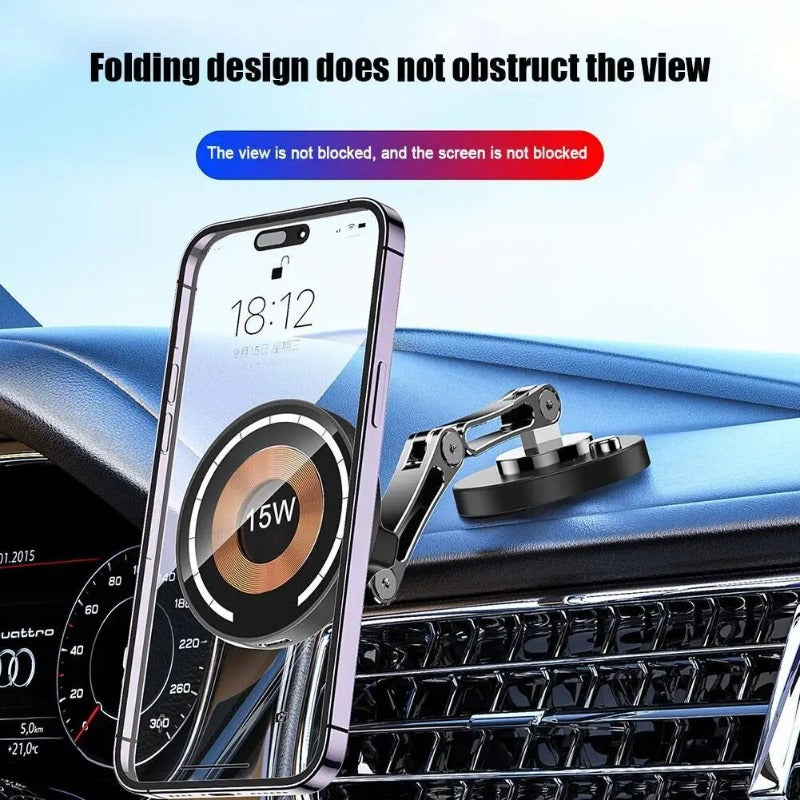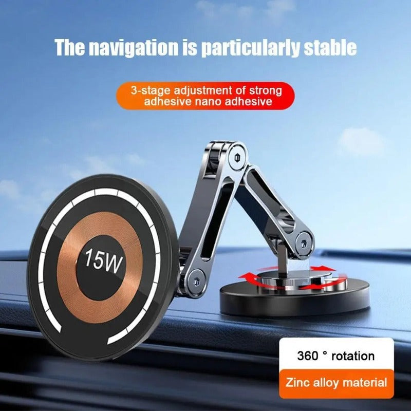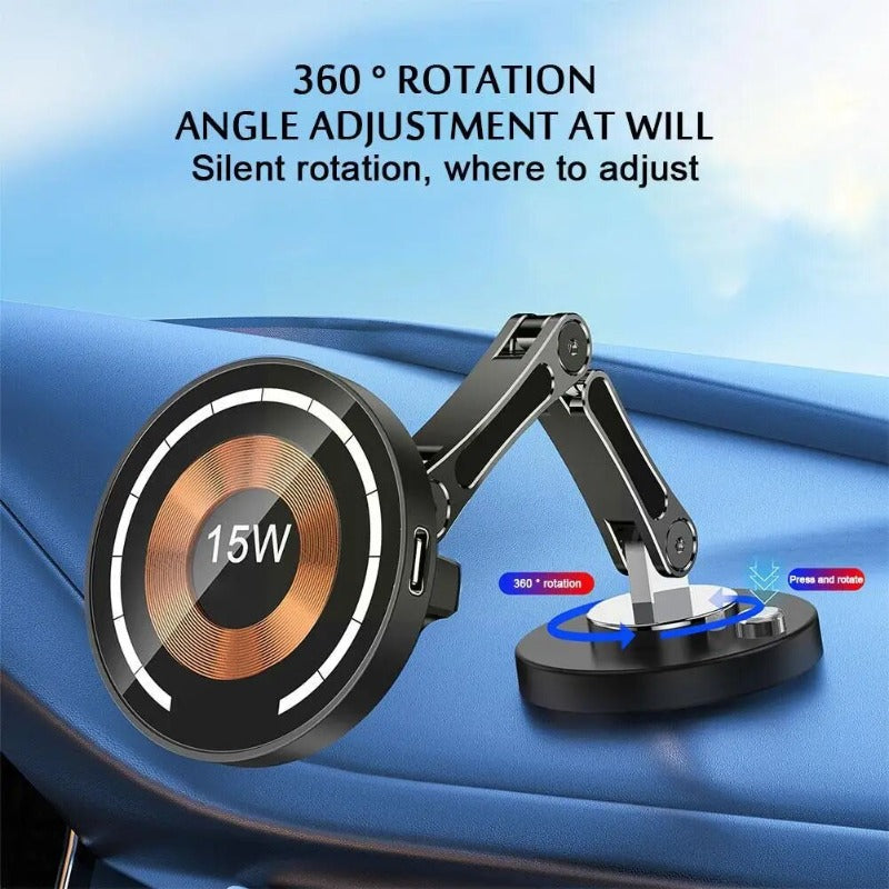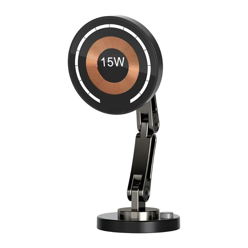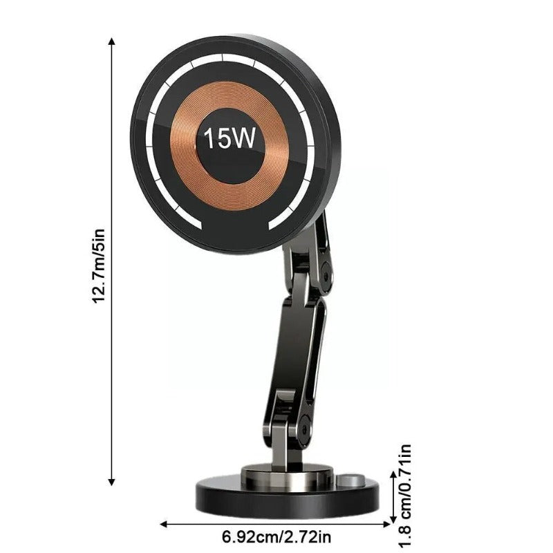 15W Magnetic Car Wireless Charger 360 Rotation 2in1 Aluminum Alloy Foldable Stand