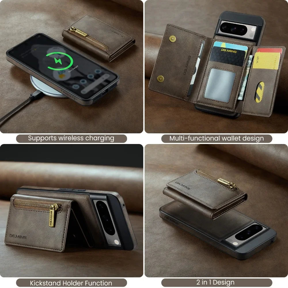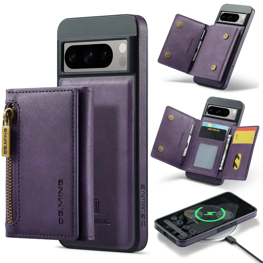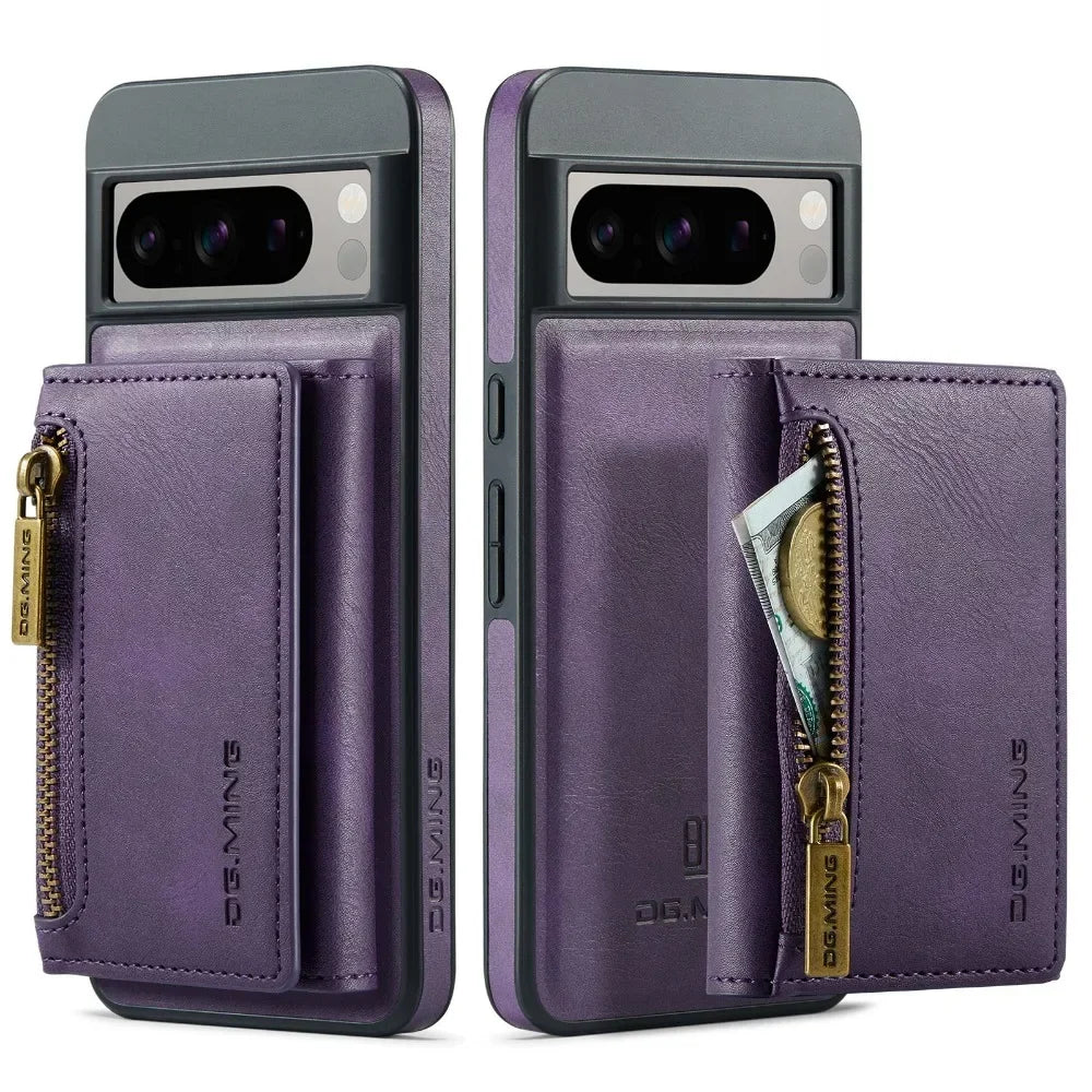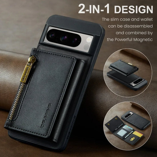 2 In 1 Detachable Magnetic Leather Zipper Wallet Case With Card Slot For Googe Pixel 8