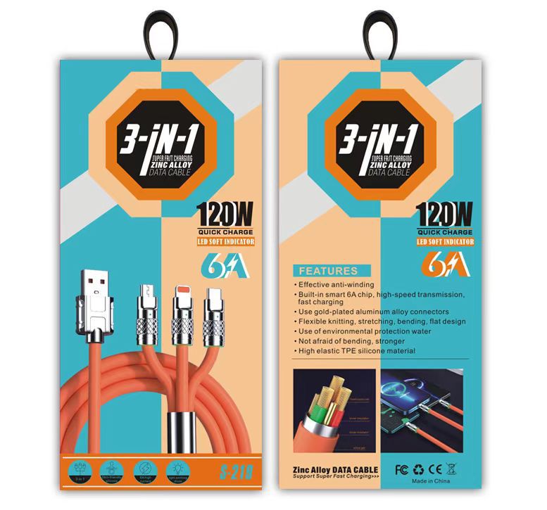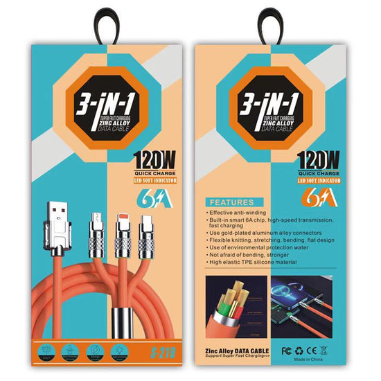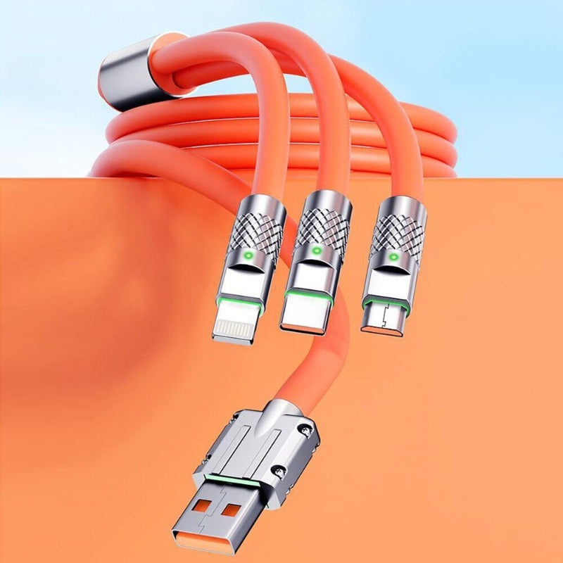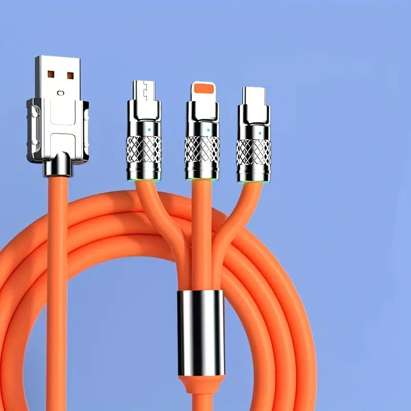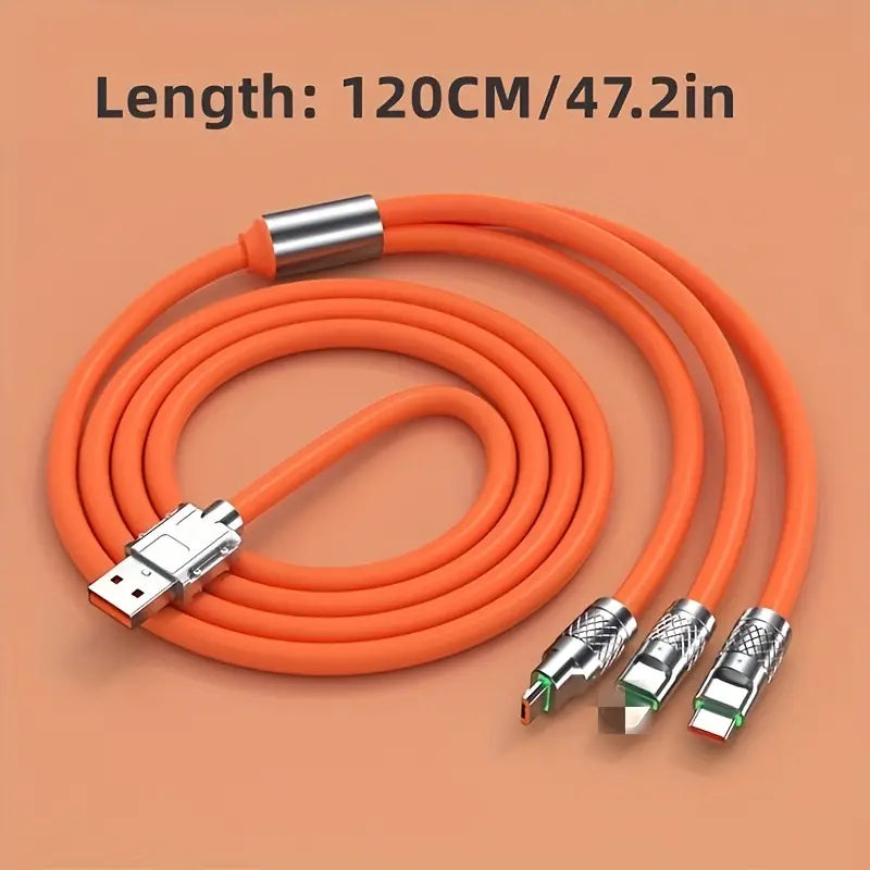 120CM/47.2in 120W 3 in 1 Fast USB Charging Cable Universal Multi Function Cell Phone Charger Cord Perfect For Travel And Compatible With Multiple Devices