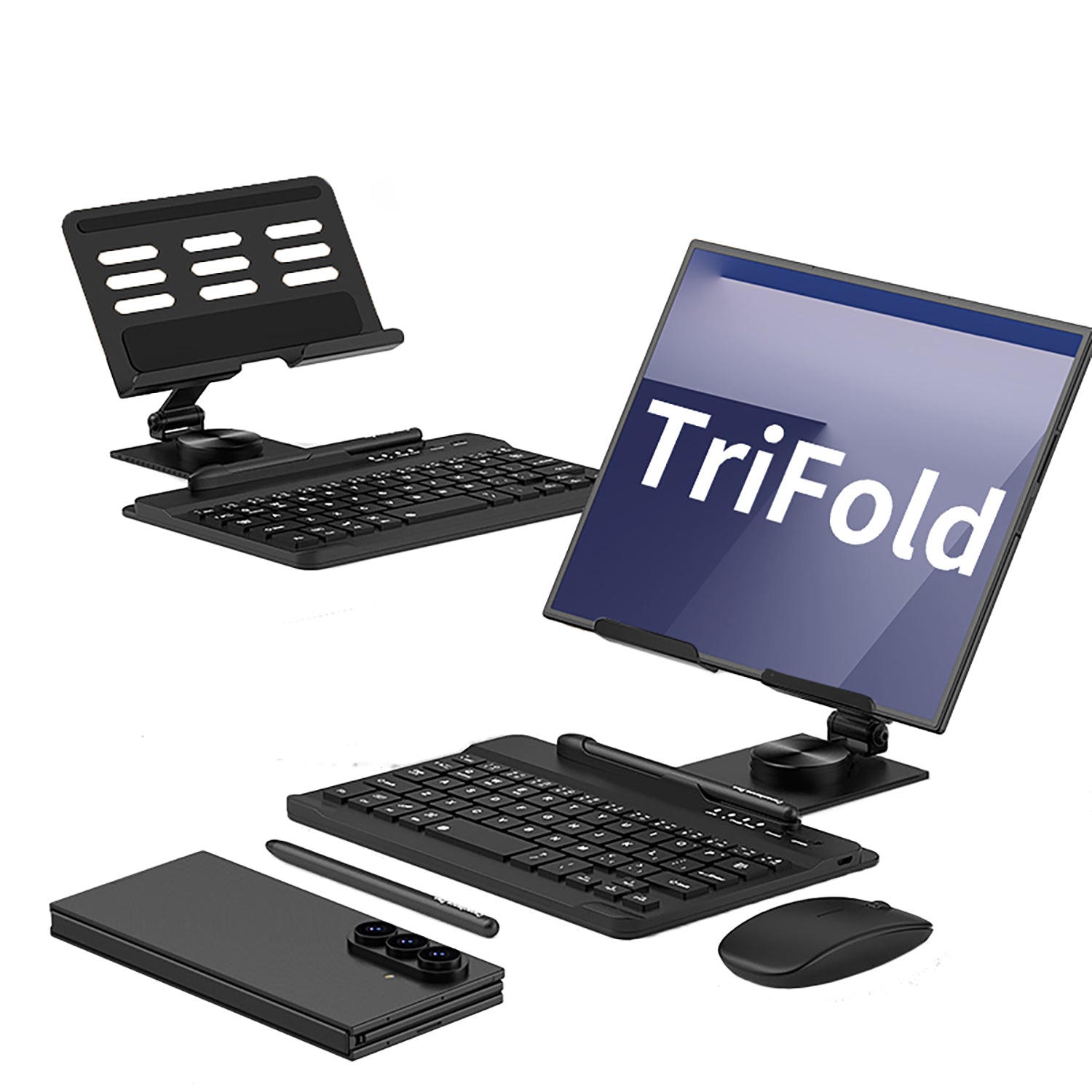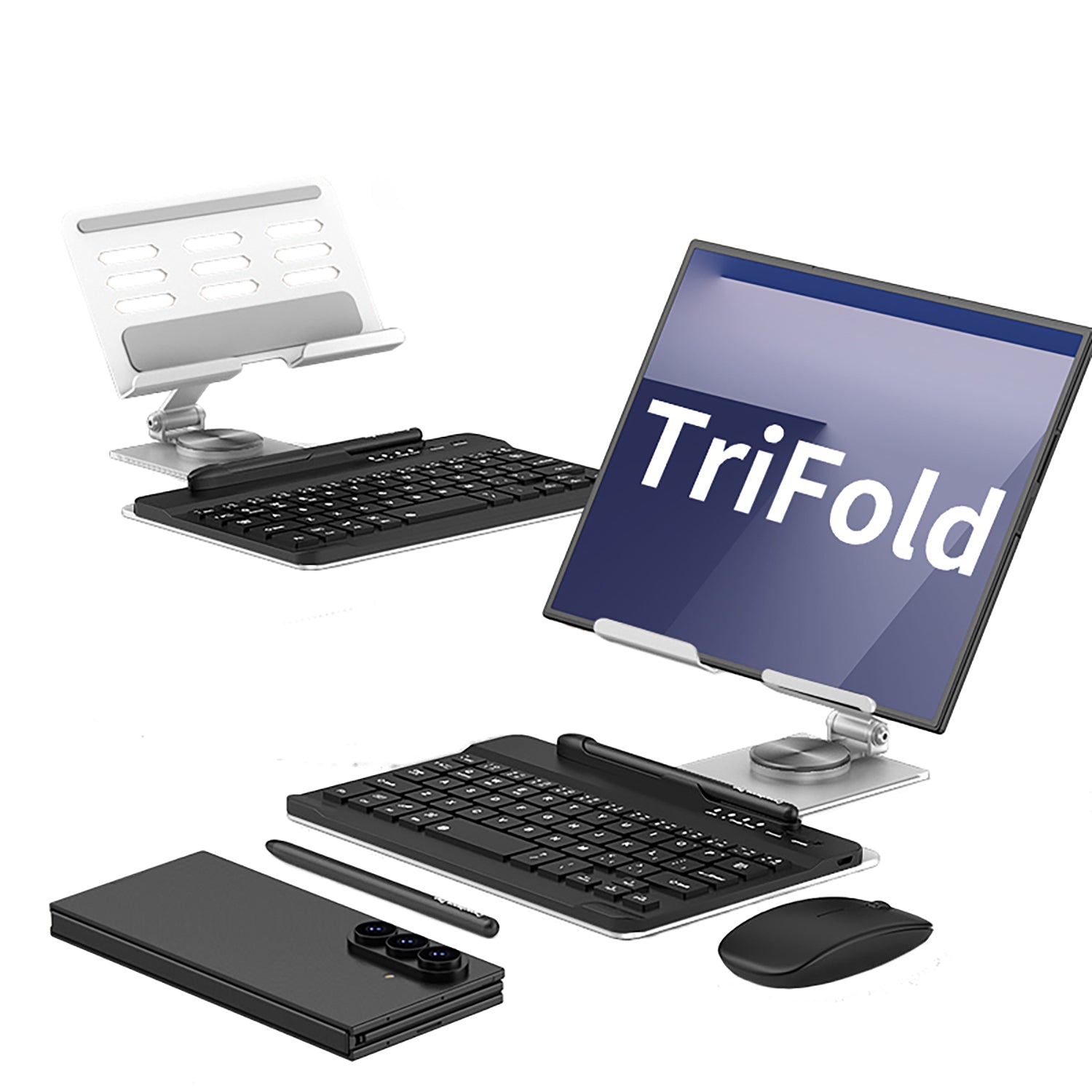 360 Rotation Aluminum Folding Phone Case Adjustment Stand Pen Slot With Keyboard Touch Pen Mouse For Samsung Galaxy ZTriFold