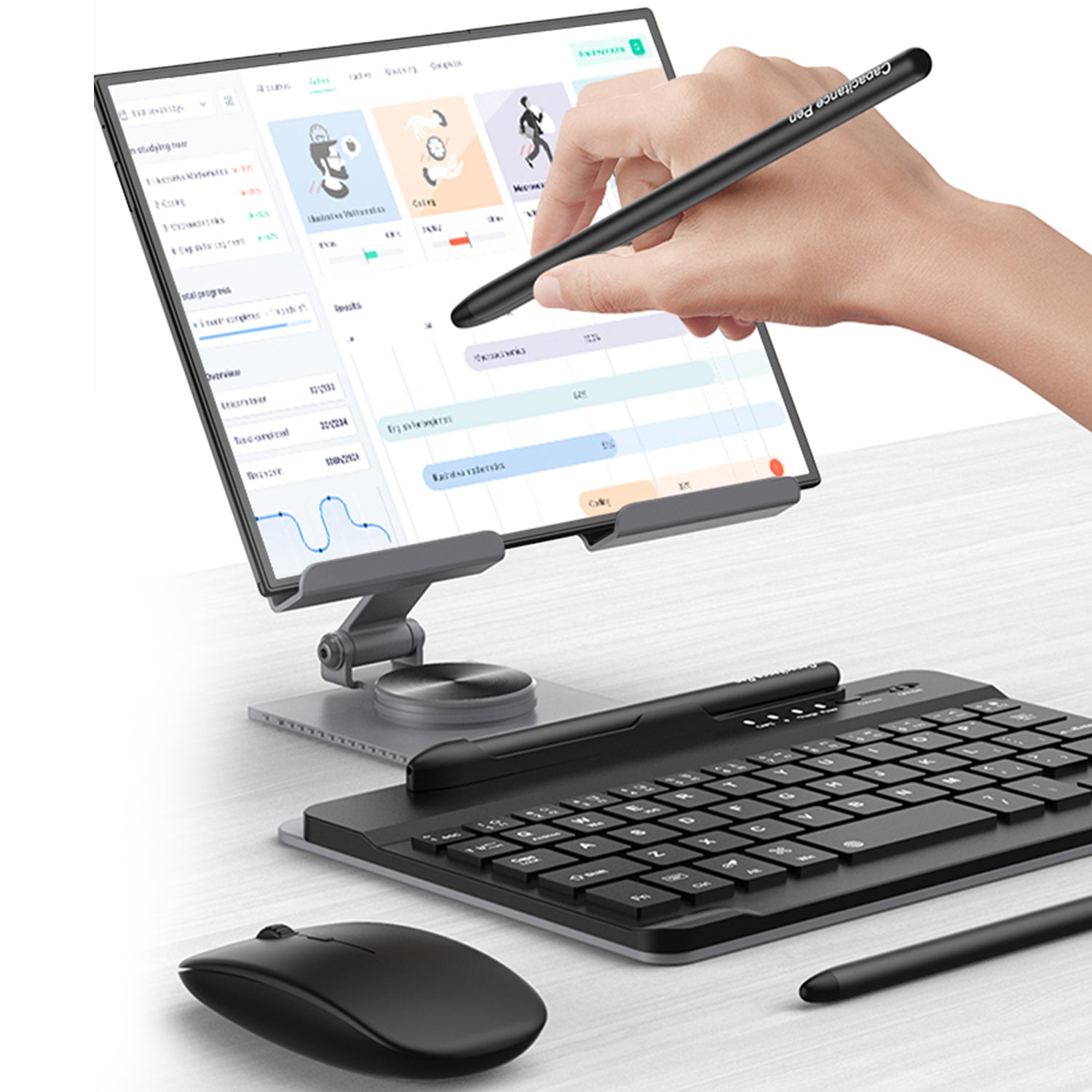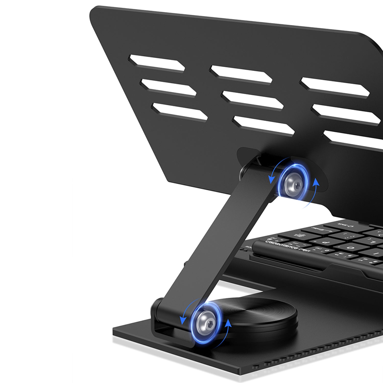 - Material:Metal rotating stand Plastic wireless keyboard
