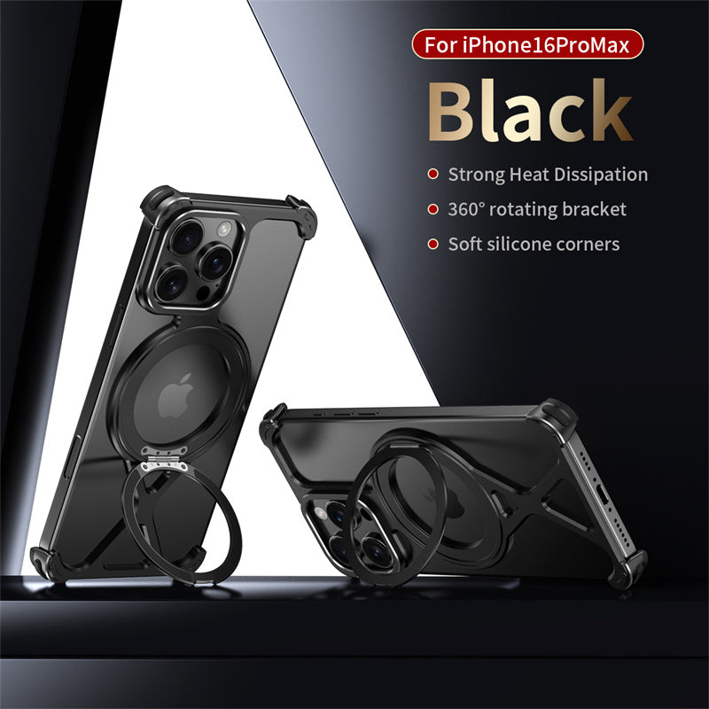 Aluminum Alloy Metal For Magsafe Phone Case for iPhone17 /16 Pro Max Phone Protect Cover Shockproof Bumper /360° Rotation Holder