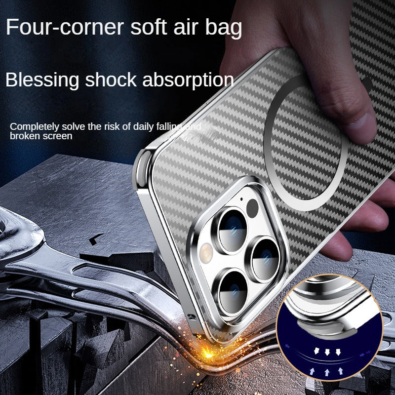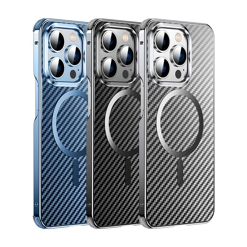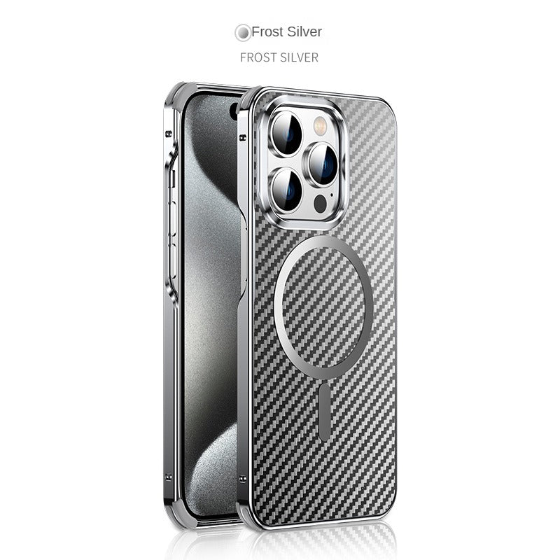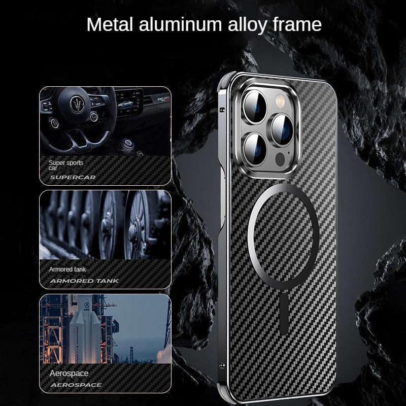 Aluminum Frame Carbon Fiber Magnetic Phone Case For IPhone