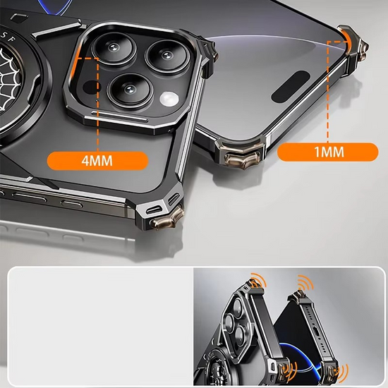 Bat Web Fidget Spinner Phone Case with Magnetic Wireless Charging, Finger Gyroscopic Pressure Relief for iPhone 16 Pro Max