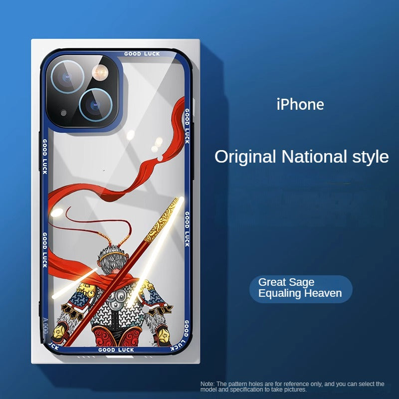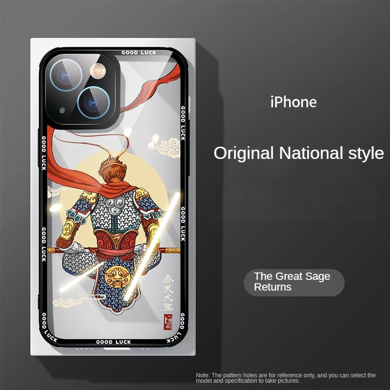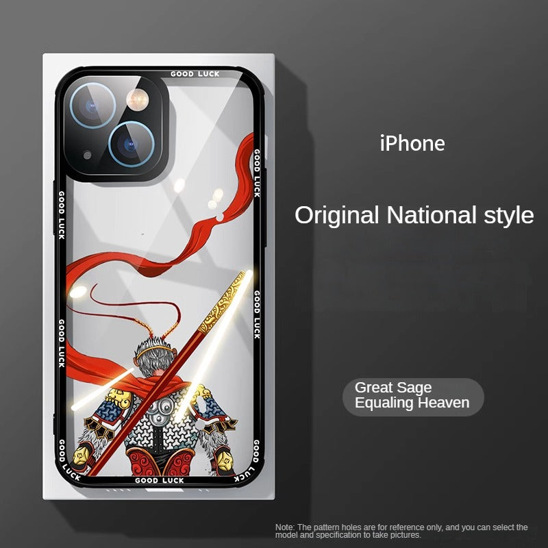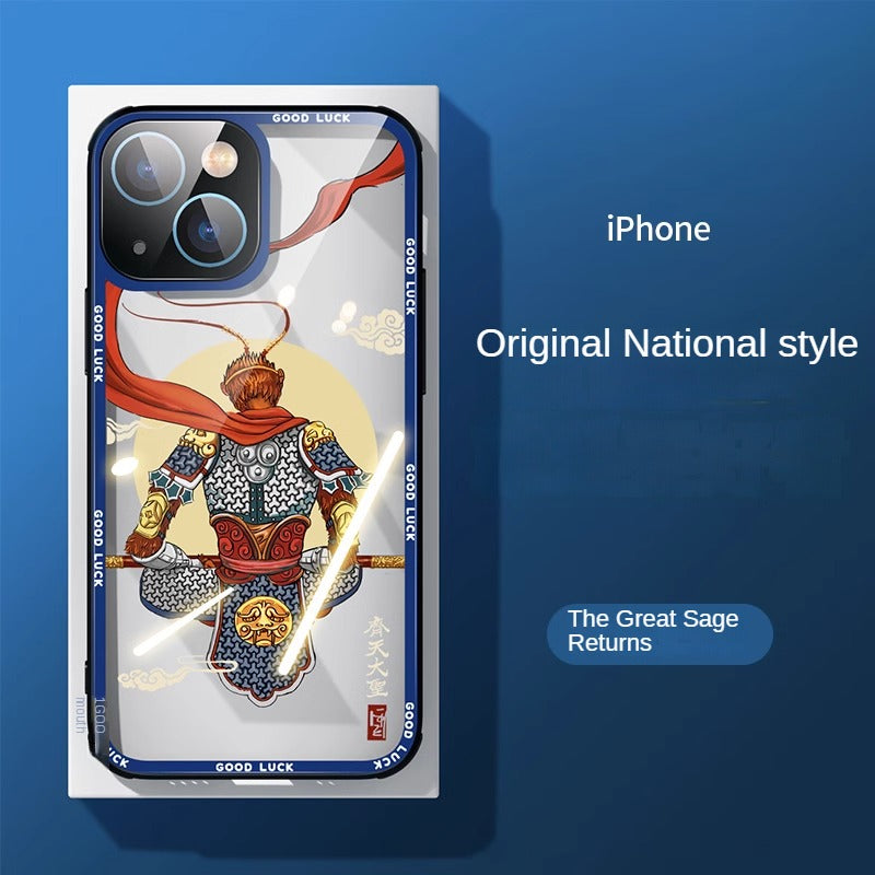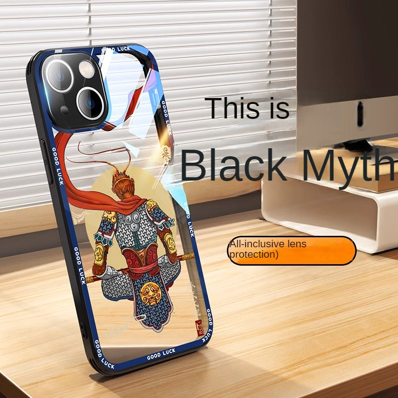 Black Myth WukongTransparent Full-cover Glass Phone Case For iPhone