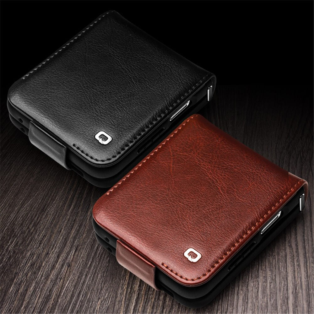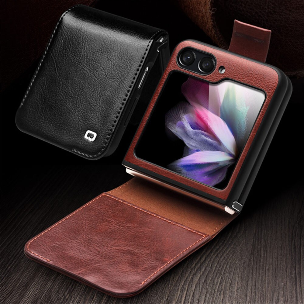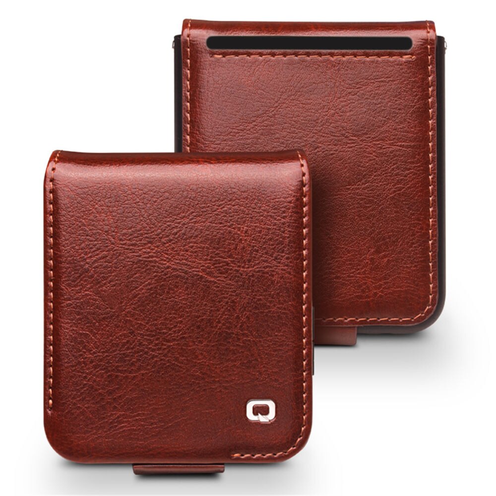 QIALINO Genuine Leather Flip Case for Samsung Galaxy Z Flip76 Retro Business Card Pocket Cover