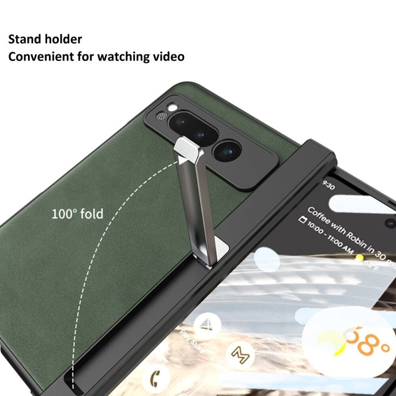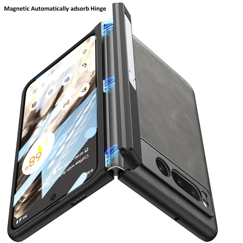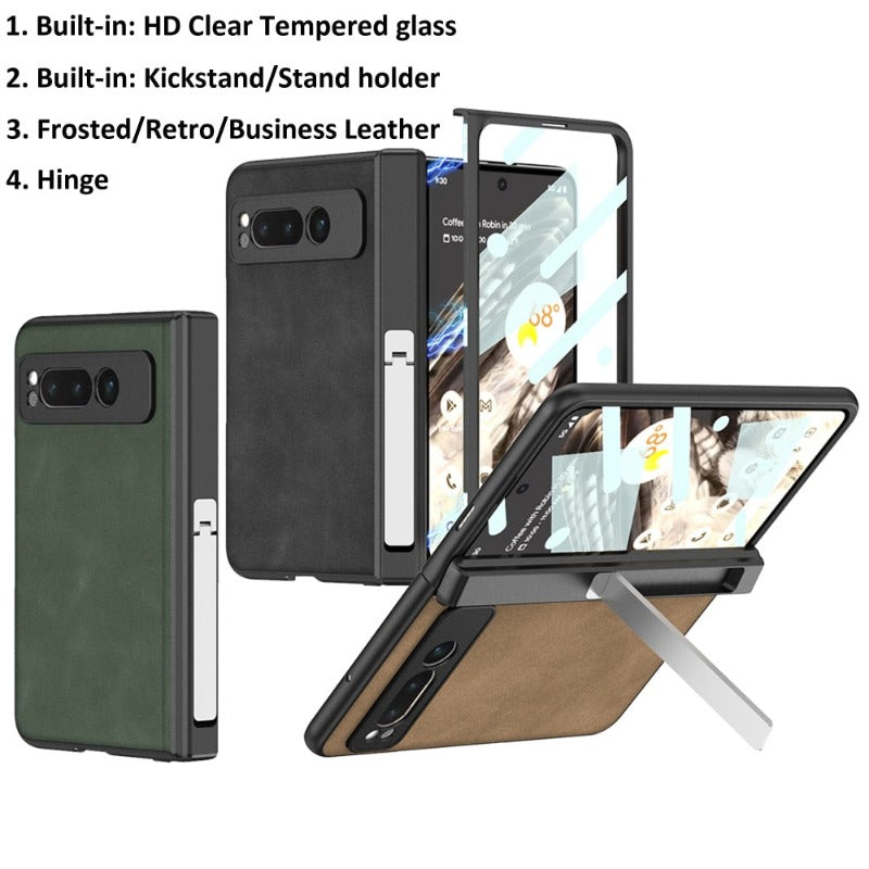 Sleek and sophisticated, this Business Retro Frosted Leather Phone Case with Kickstand is the perfect choice for Google Pixel Fold owners. Enjoy the luxury of real leather in a frosted finish for a professional look and feel. The magnetic hinge and kickstand give you ergonomic advantages for better device control, while the HD tempered glass and anti-fingerprint technology keep your device safe from scratches and smudges.