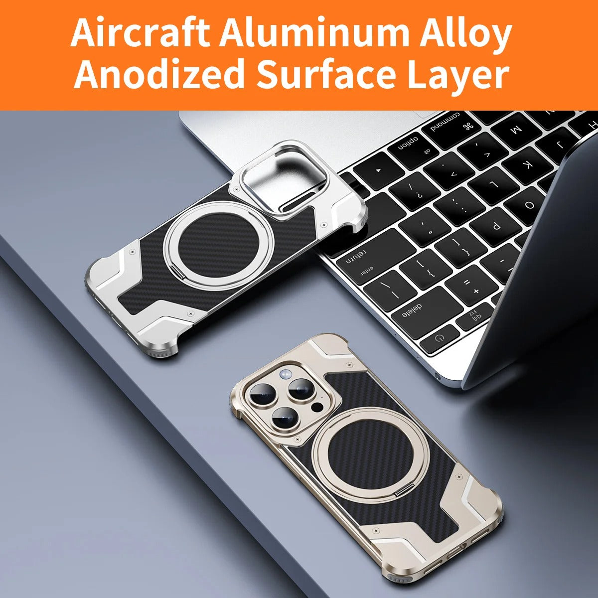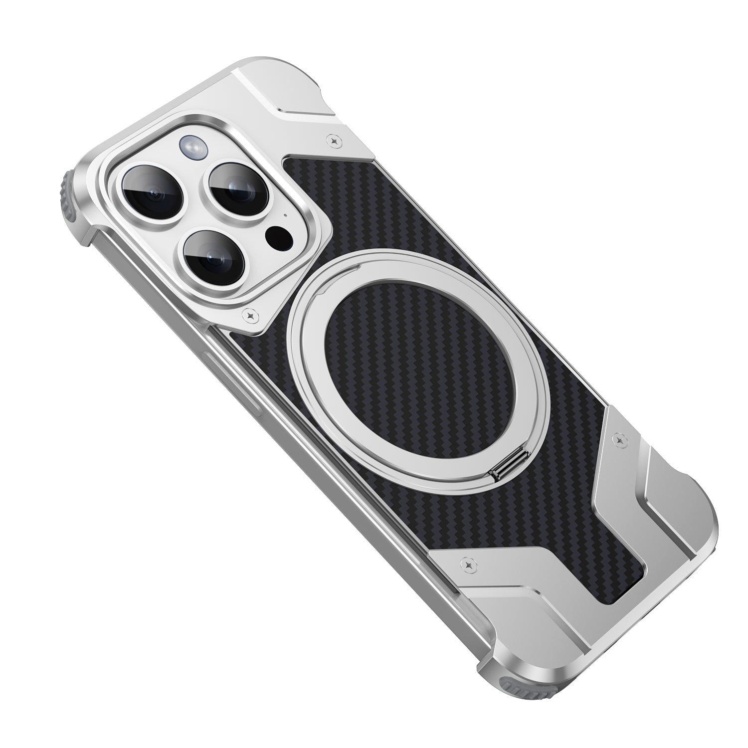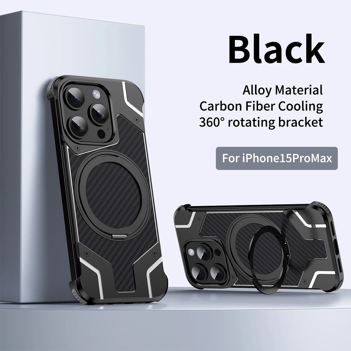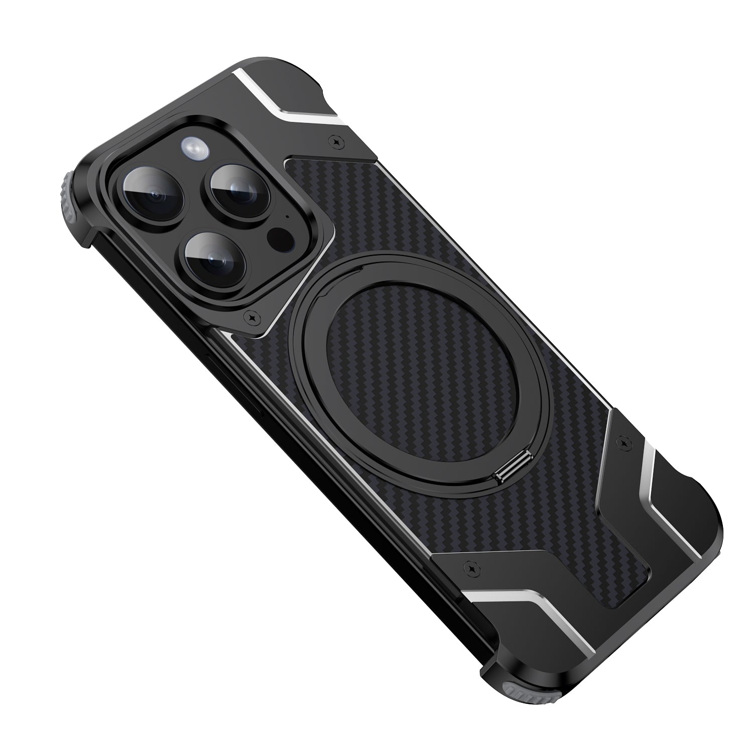 Carbon Fiber Metal Anti Fall Case for iPhone 16 15Pro Max Magnetic 360 Rotating Bracket Aluminium Alloy Shockproof Case