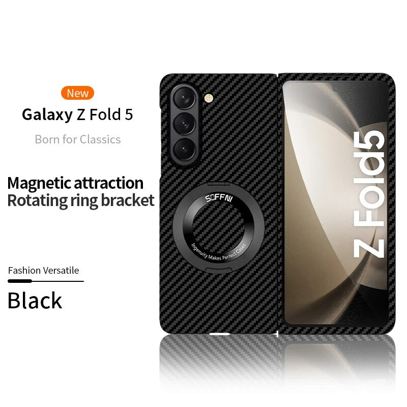 Carbon Fiber Phone Case With Stand Holder Wireless Charging For Samsung Galaxy Z Fold 5 4