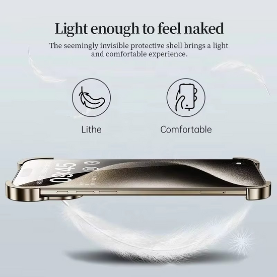 Case Irregular Anti-fingerprint Metal Corner Pad Anti-drop Frameless Phone case for Iphone17pro 16 Pro Max Bare Feel Light Ultra Thin Borderless Protective Cover
