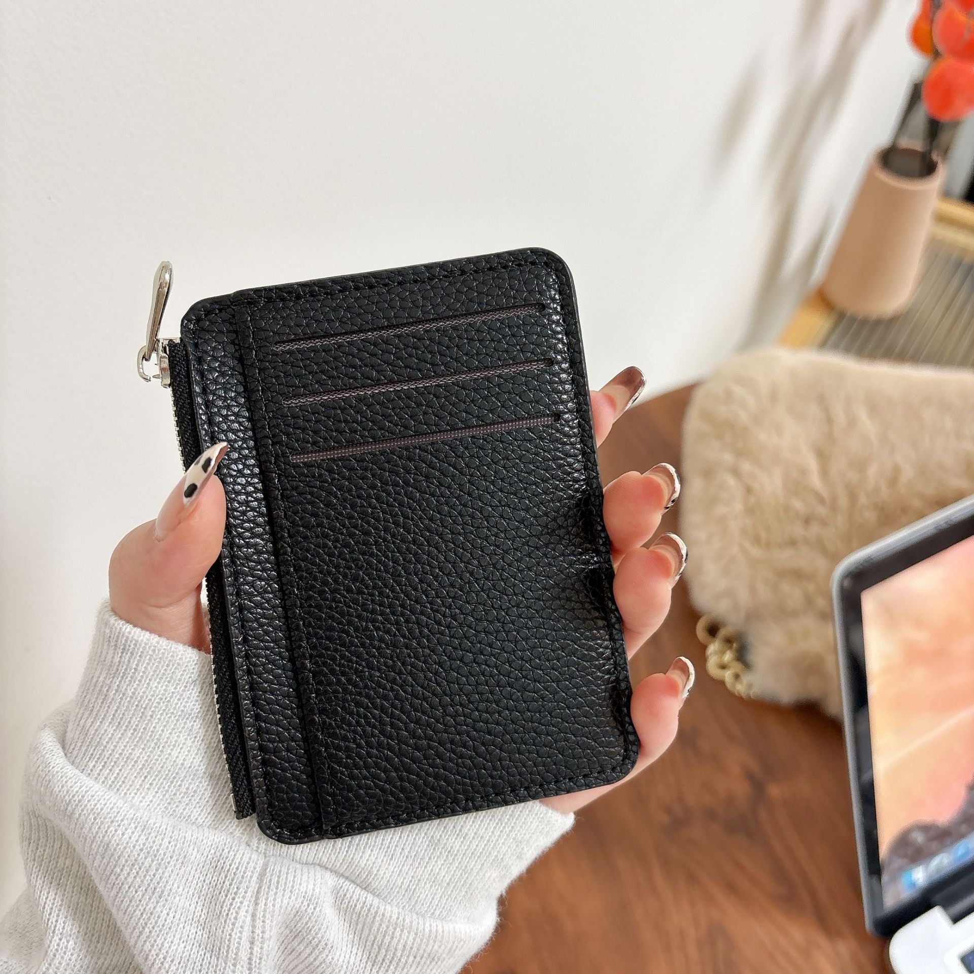 Inspired by luxury minimalist design, this ultra-thin card holder combines sophisticated style with practical functionality. Crafted from premium PU leather with a refined lychee texture, it features multiple card slots to organize essentials without bulk. The sleek profile fits effortlessly into pockets or bags, making it ideal for those who value both elegance and efficiency. Perfect for professionals seeking a refined accessory that elevates everyday carry.