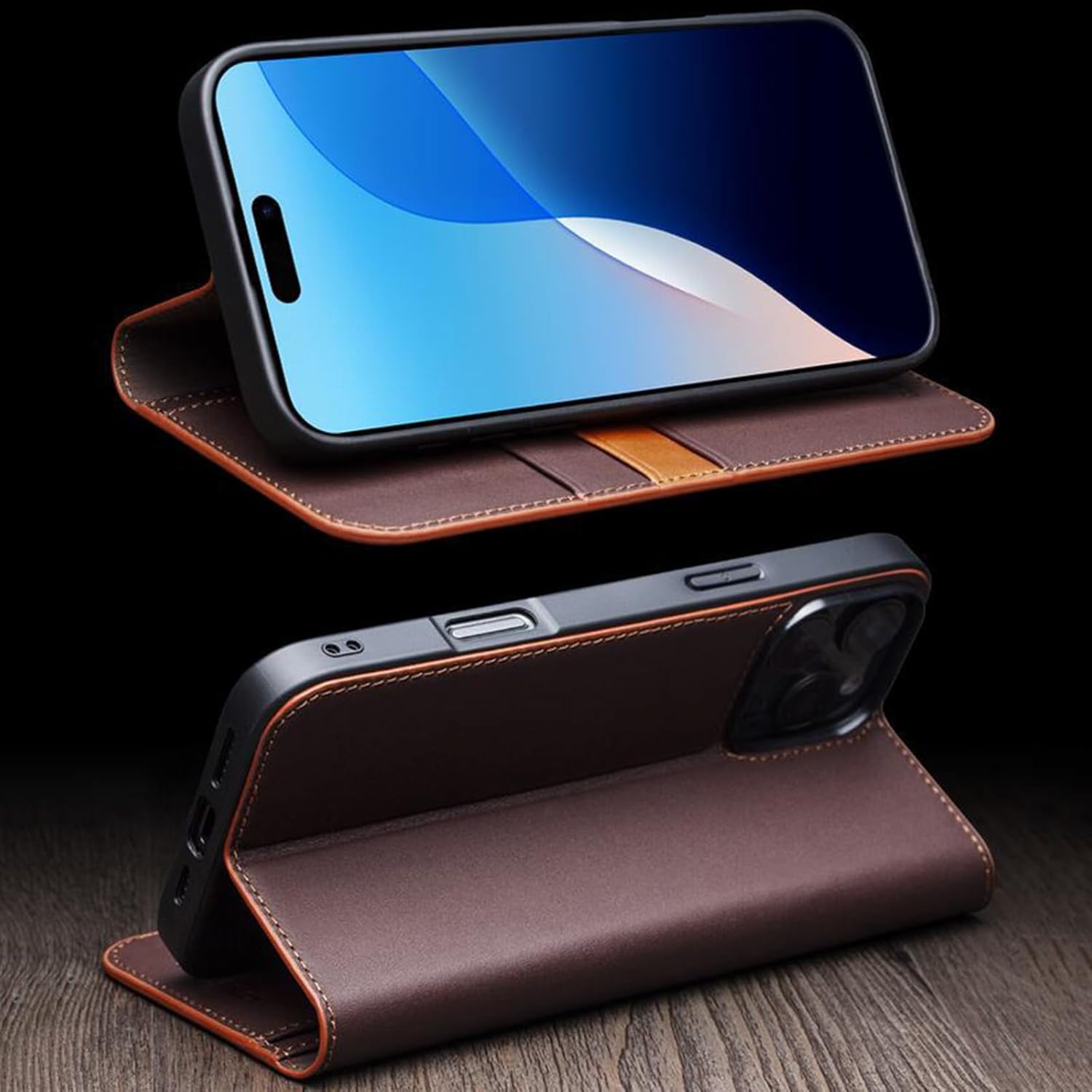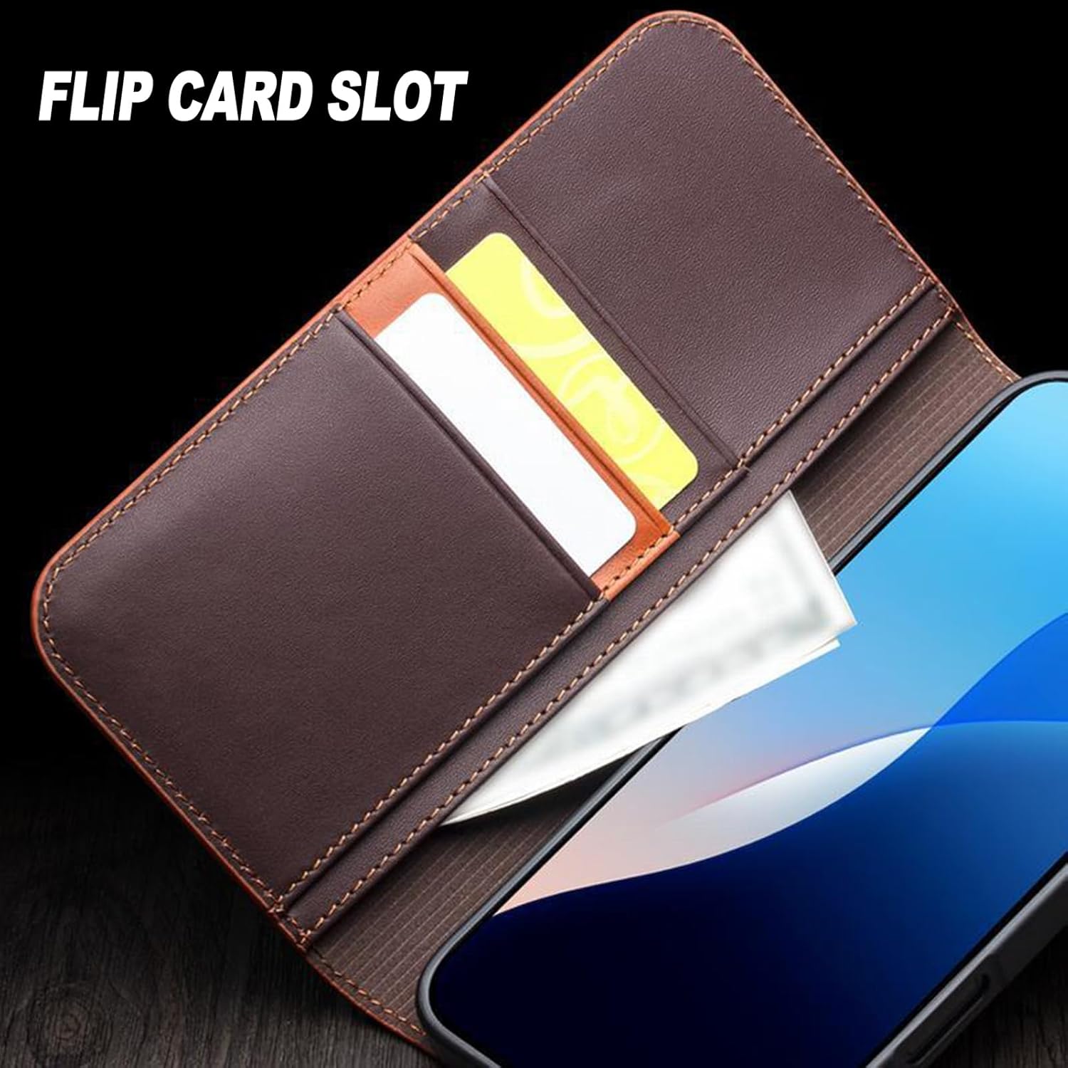 Cowhide Leather Classic Flip Wallet Case With Card Slots For iPhone