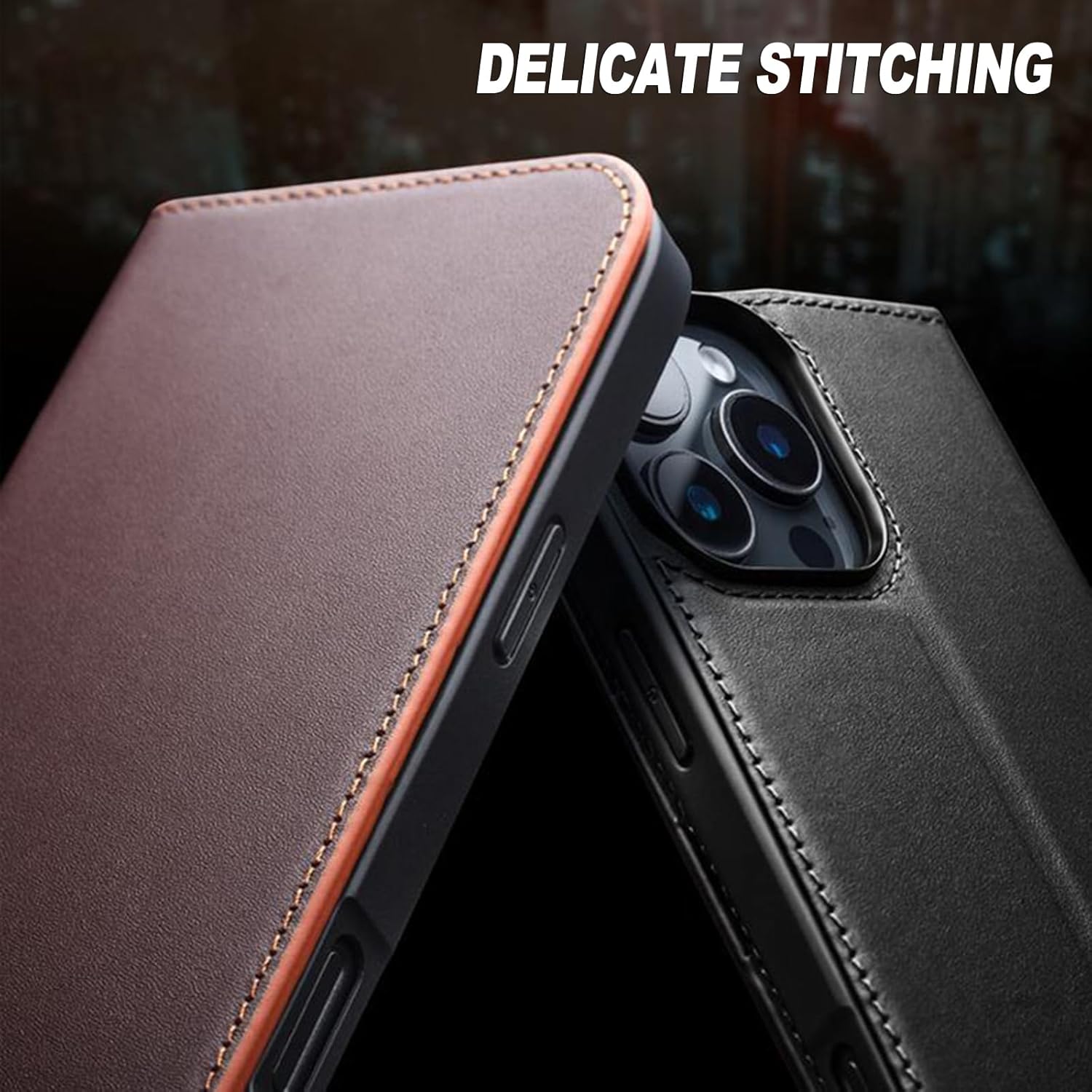 Luxury Cowhide Leather Classic Flip Wallet Case For iPhone 16 Plus Handmade Fashion Cover with Card Slots for iPhone 16Pro Max/16Pro