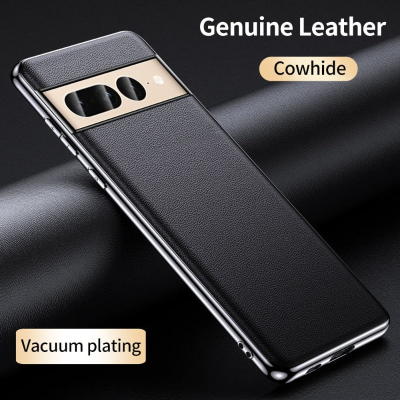 Cowhide Leather Plating Phone Case for Google Pixel 8 7