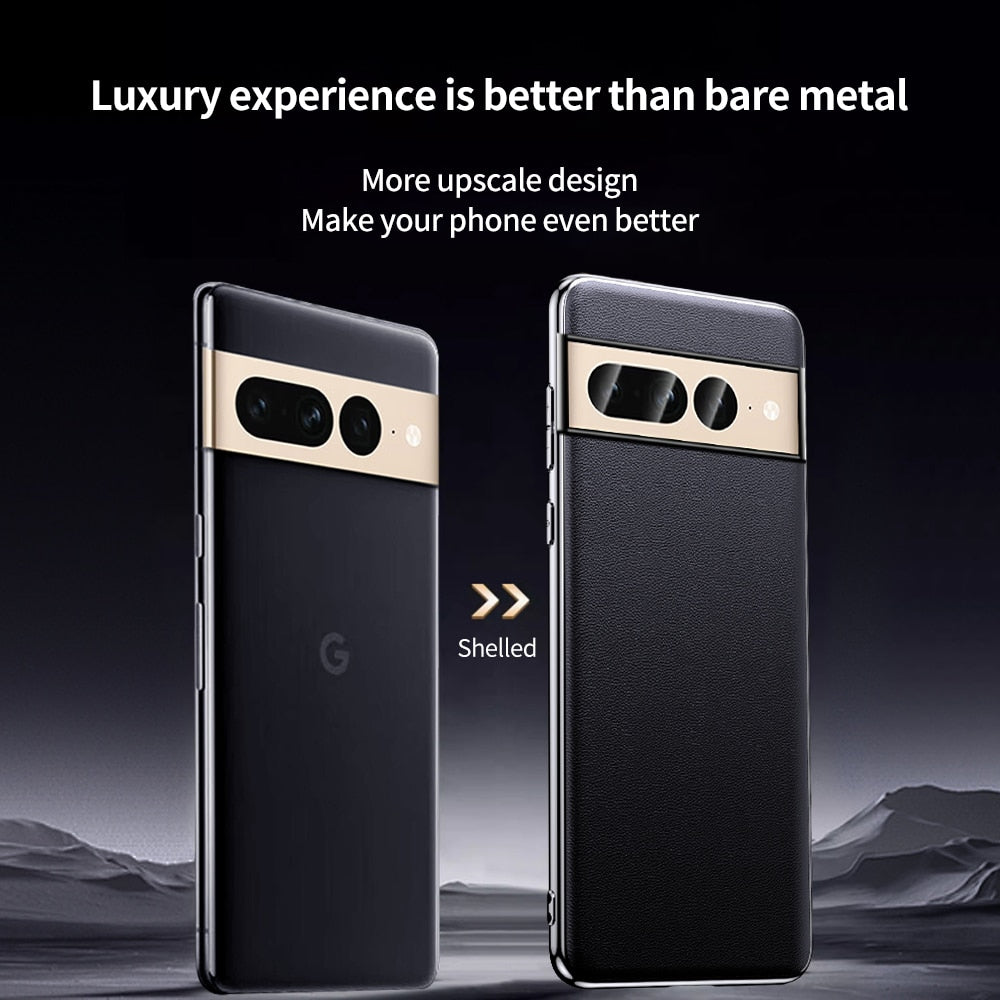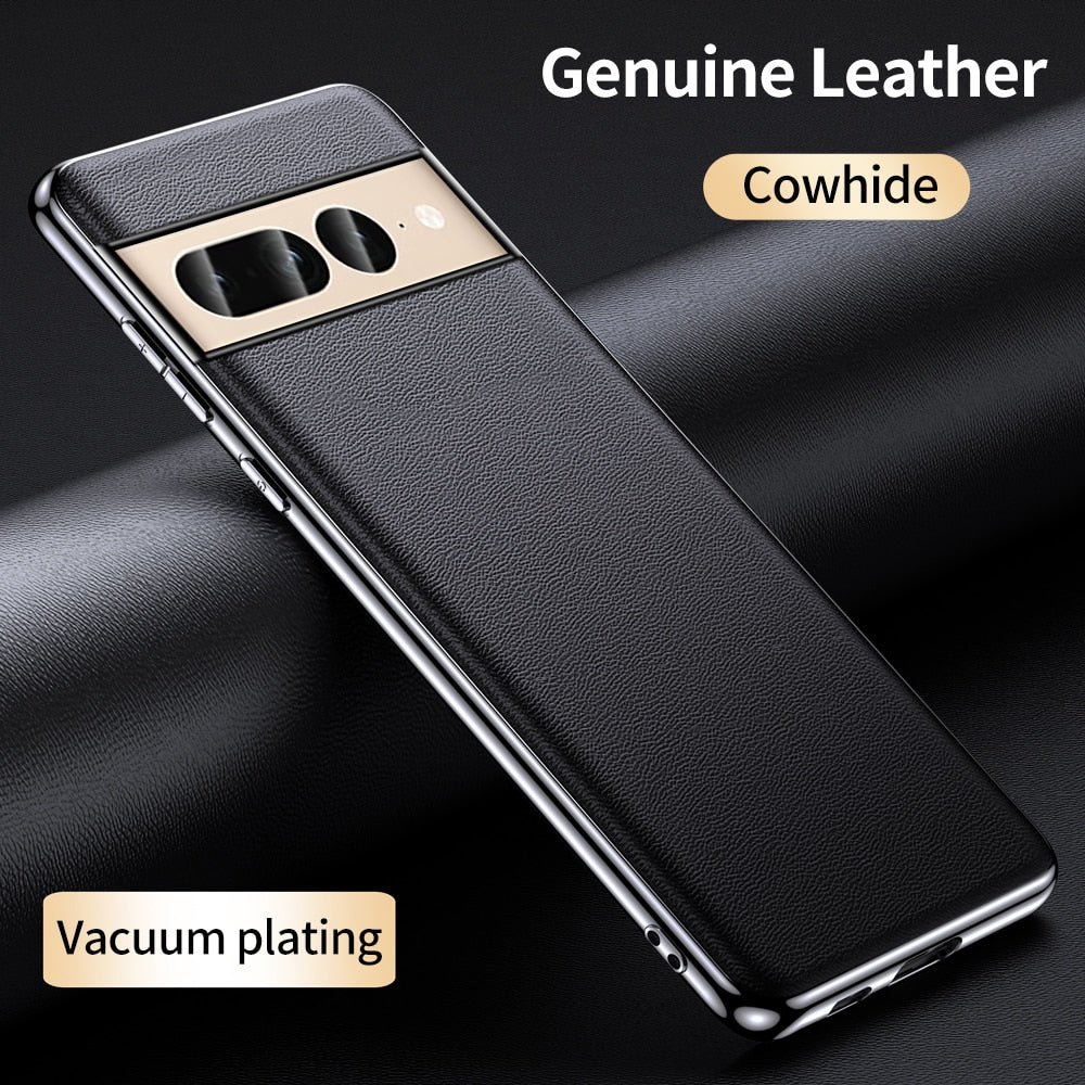 Phone Case for Google Pixel 8 7 Pro 7A Luxury Genuine Cowhide Leather Plating Shockproof Full Protection Back Cover