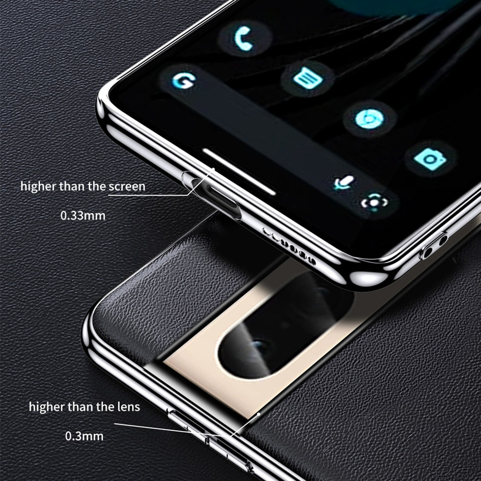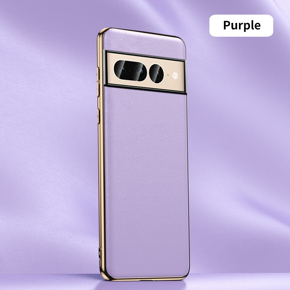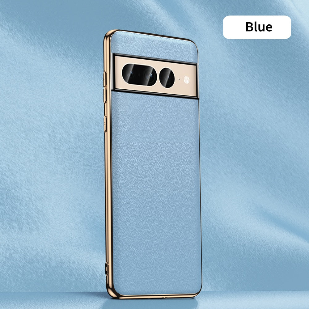 Cowhide Leather Plating Shockproof Phone Case For Google Pixel 8 7
