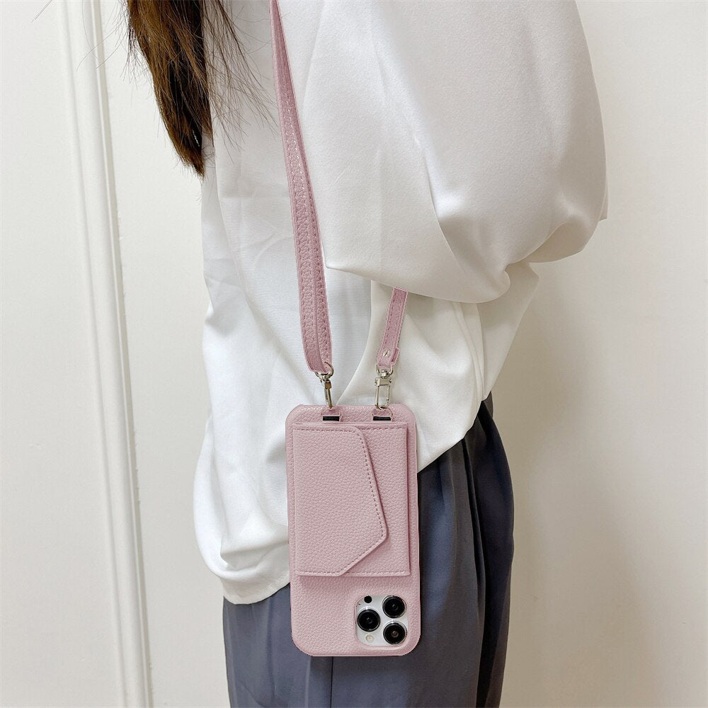 Crossbody Wallet Phone Case For iPhone 14 13 12 11 Pro Max 14Plus Card Holder Lanyard Leather Cover
