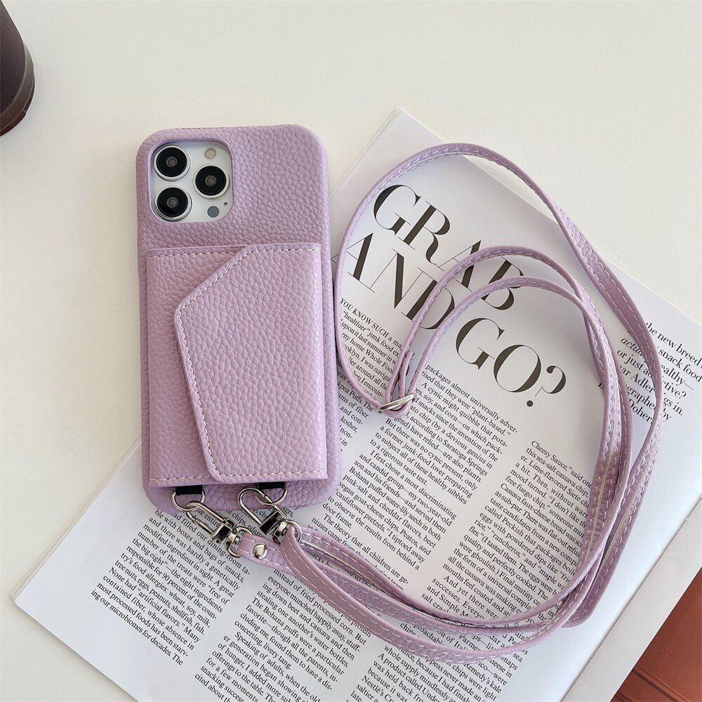 Crossbody Wallet Leather Phone Case With Card Holder For iPhone
