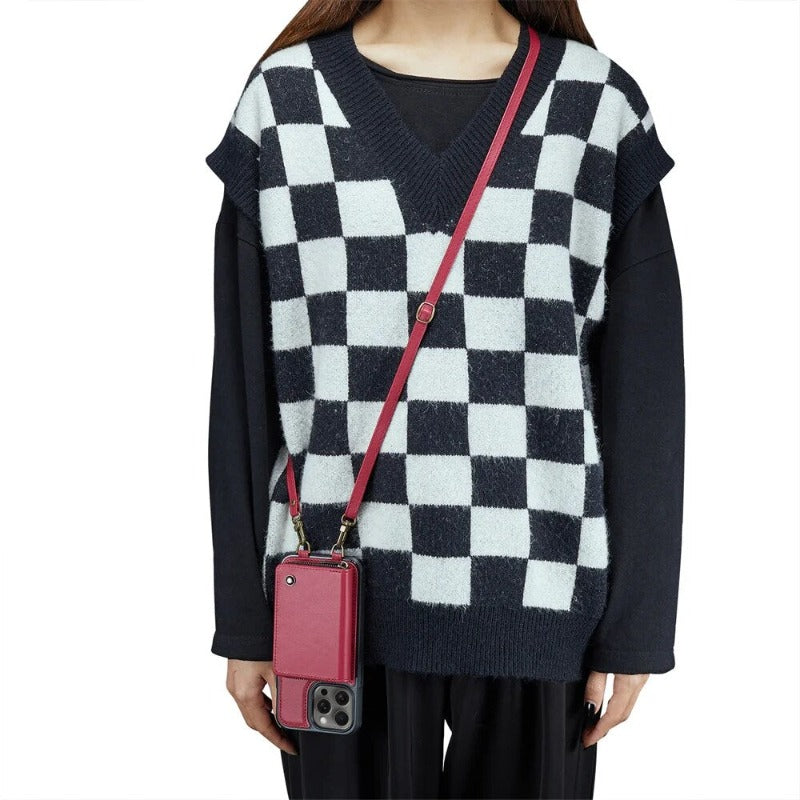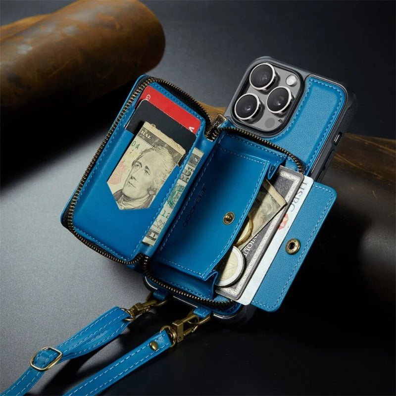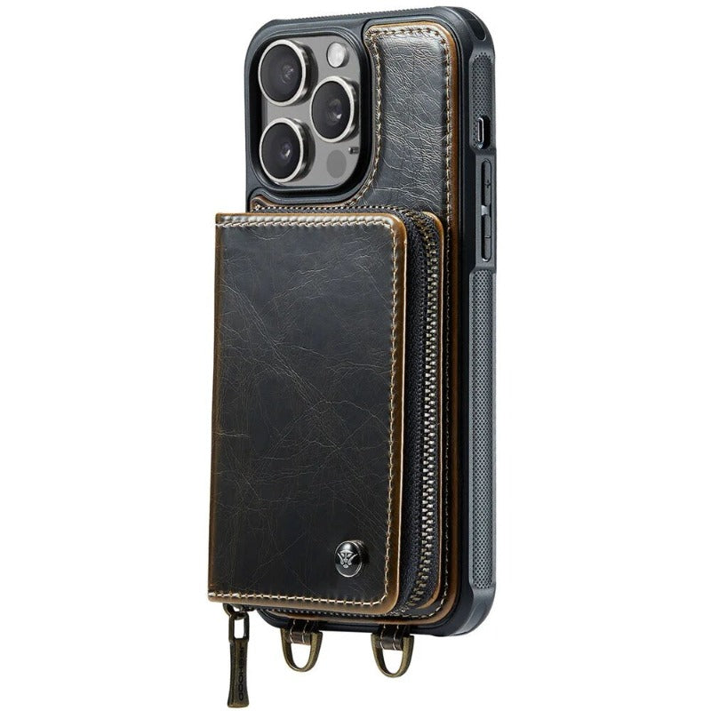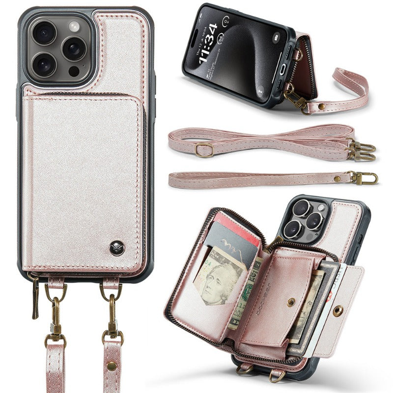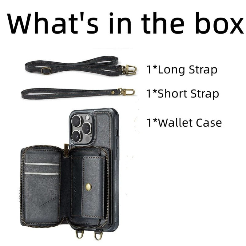Crossbody Wrist Strap Leather Wallet Phone Case with Card Holder For IPhone