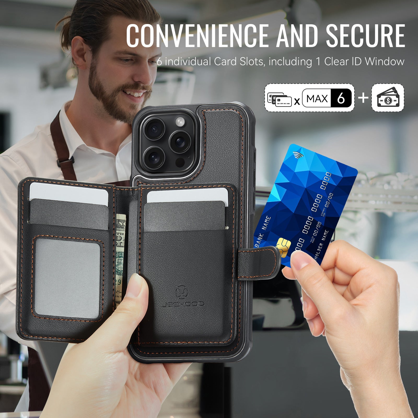 Detachable Card Holder Leather Case Magnetic RFID Blocking For IPhone