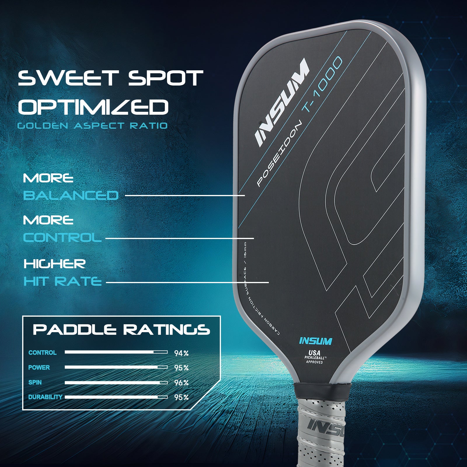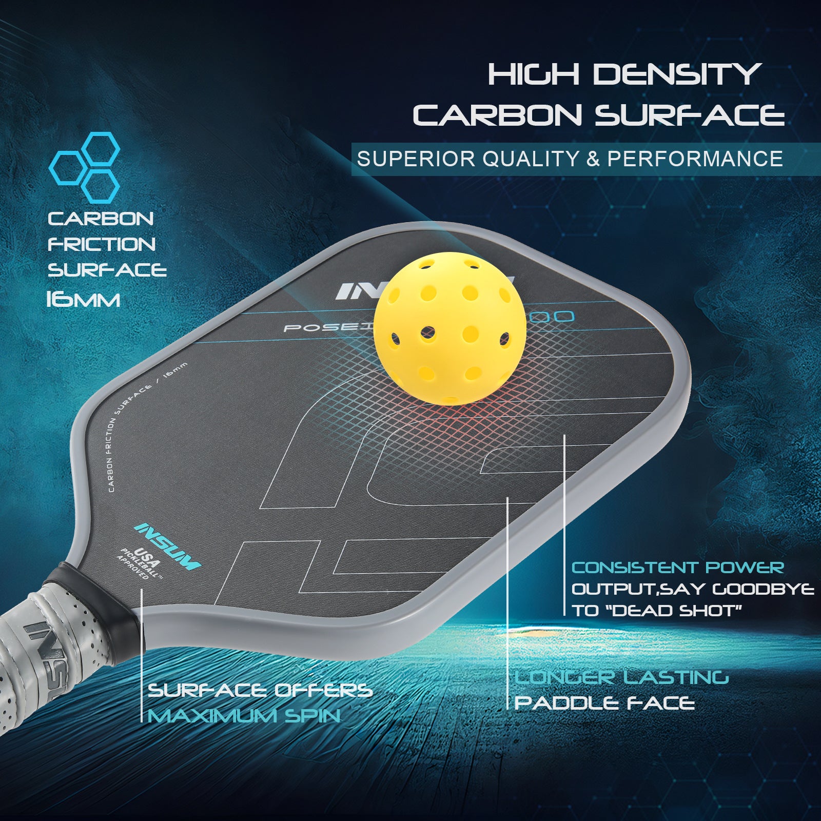 Durable T1000 Carbon Fiber Thermoformed Pickleball Paddle USAPA Approved Pickleball Paddle with Paddle Cover with Textured Carbon Grip Surface Elongated Handle Maximum Spin