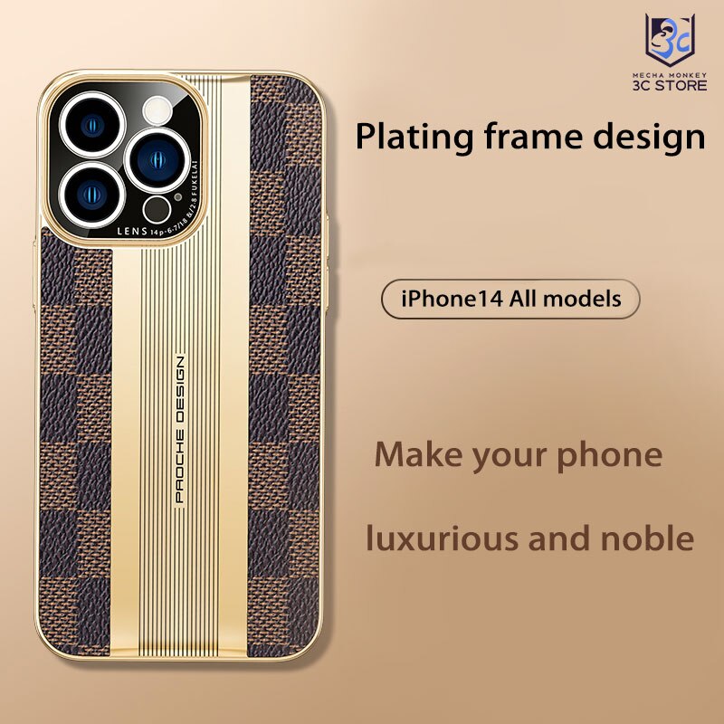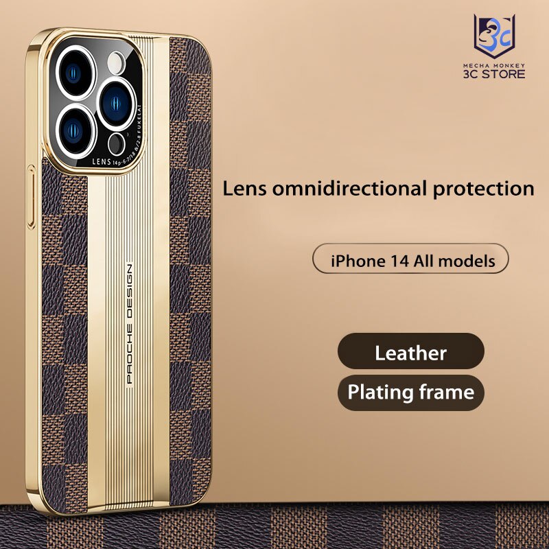 Iphone 13 14 Pro Max Cases Dustproof Apple12 Housing Premium Leather Lens Protection Good Fall Protection Retro Plaid High-end