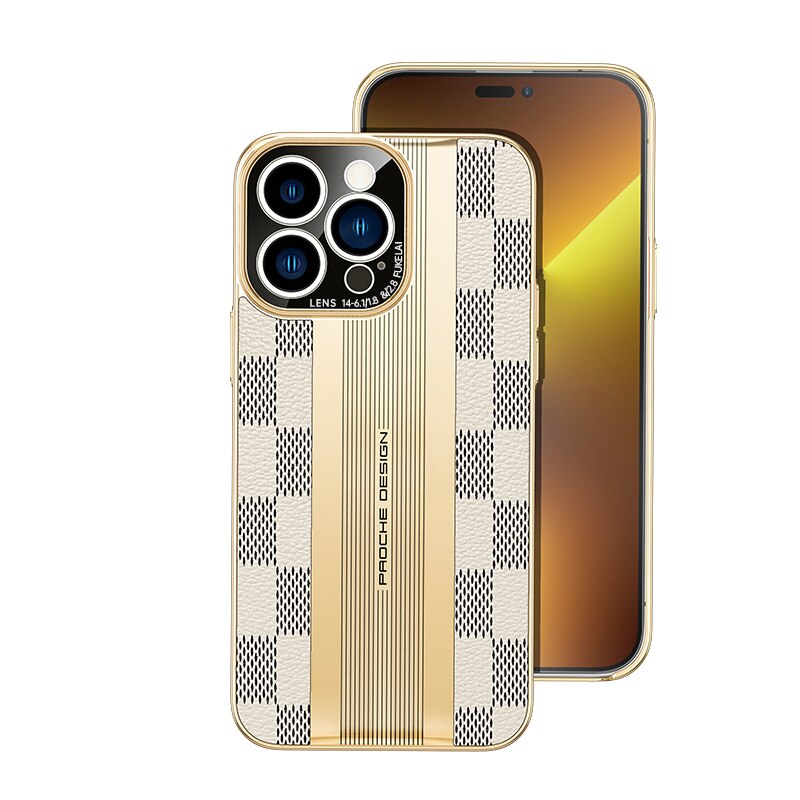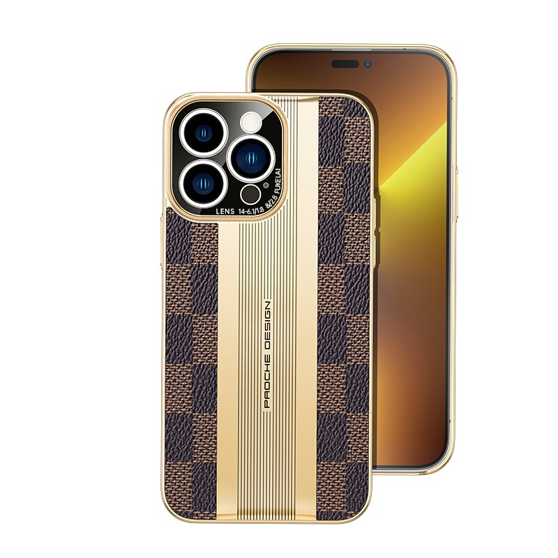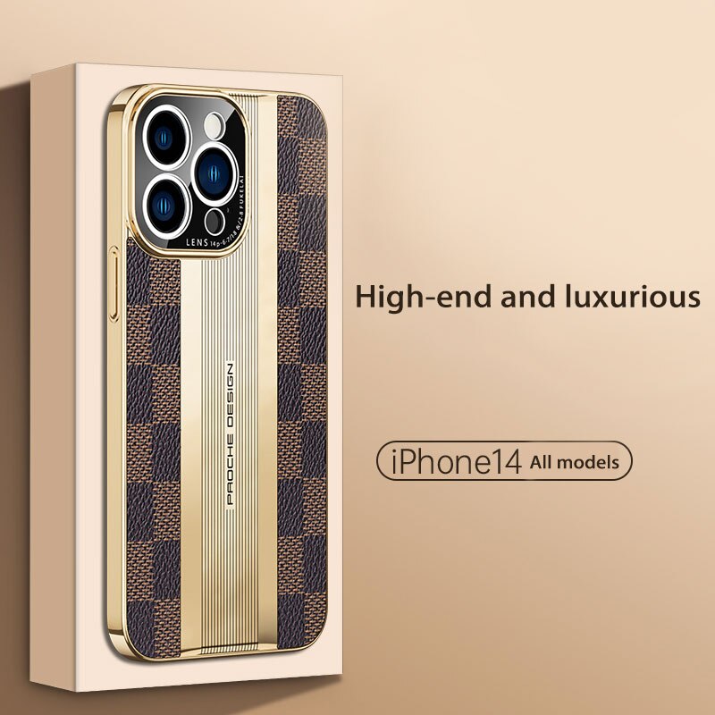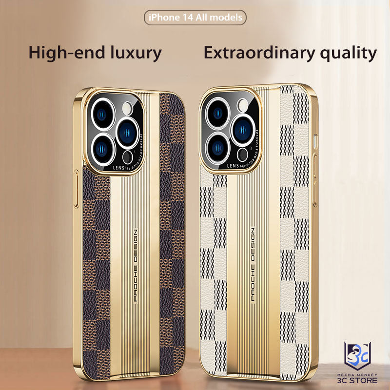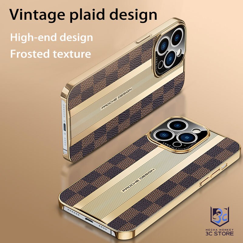 Electropated Premium Leather Retro Plaid Phone Case For IPhone