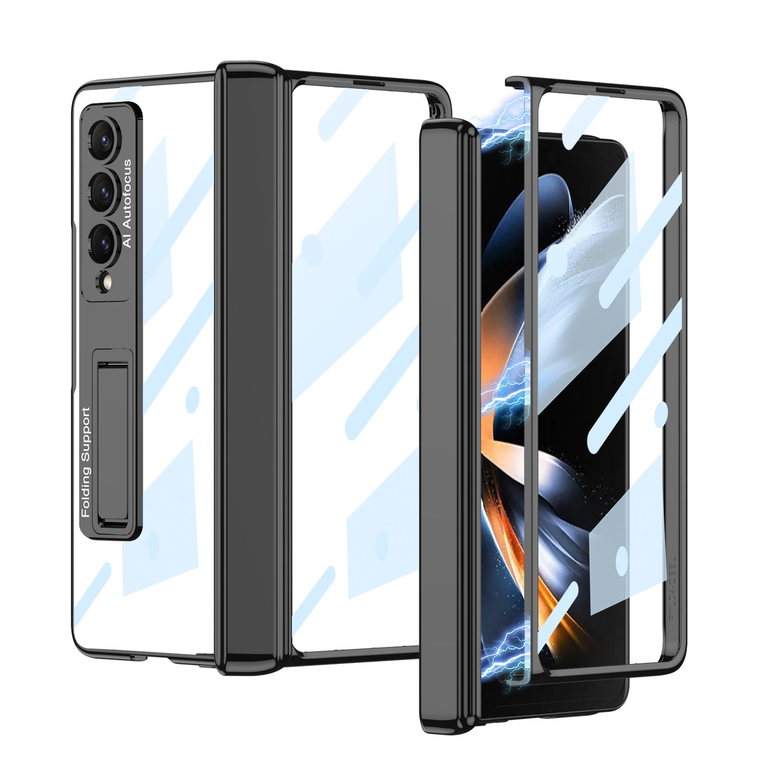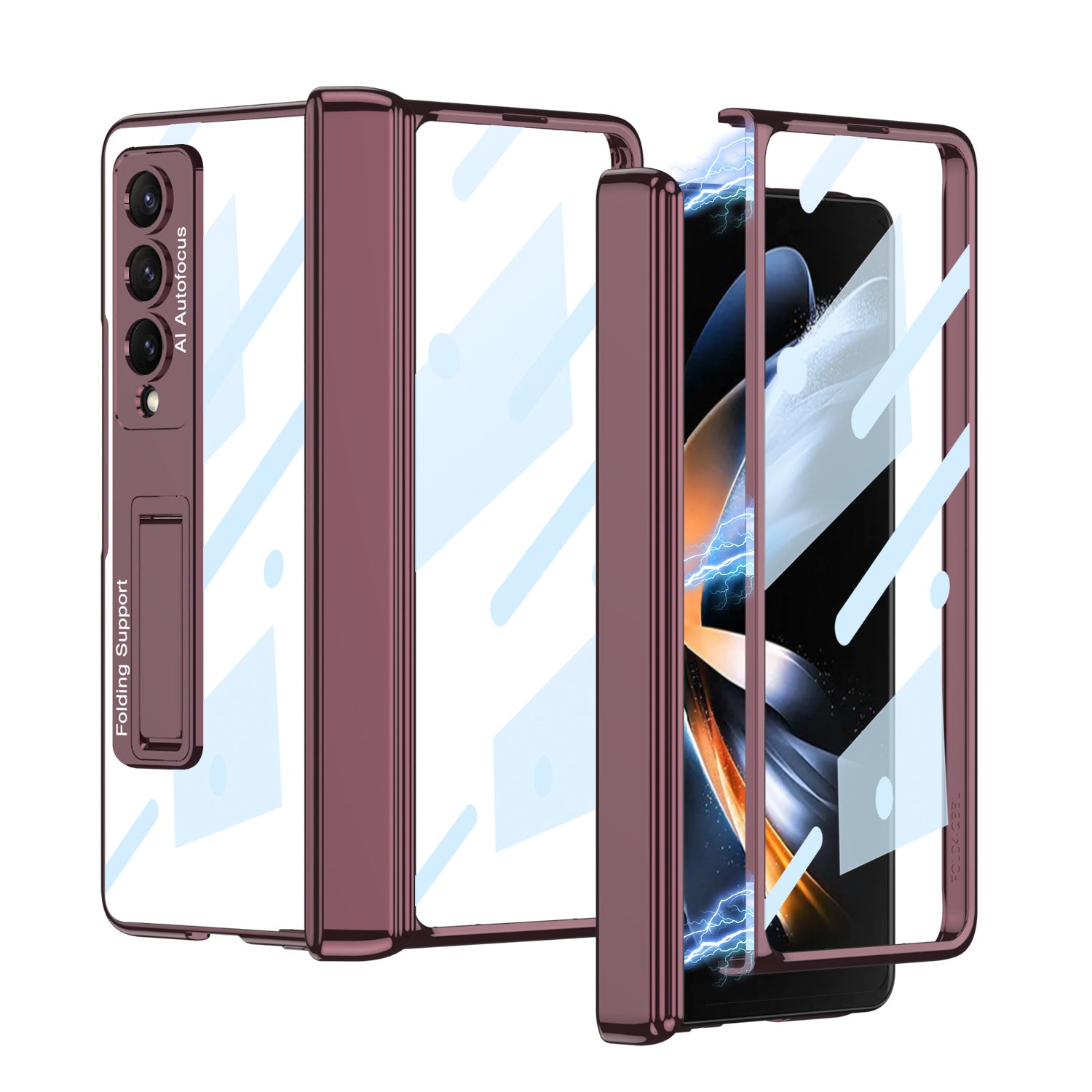 Electroplated Magnetic Hinge Clear Hard Phone Case With Glass Film For Samsung Galaxy Z Fold 4