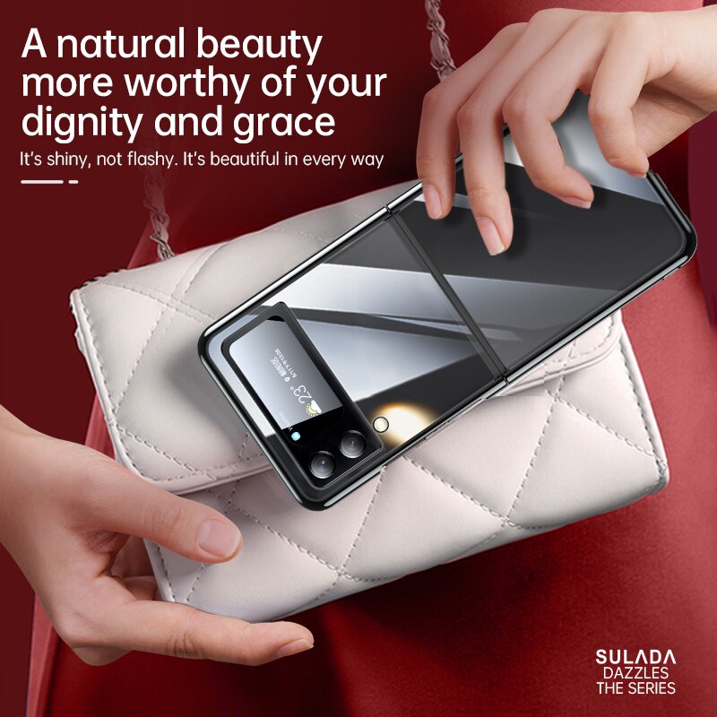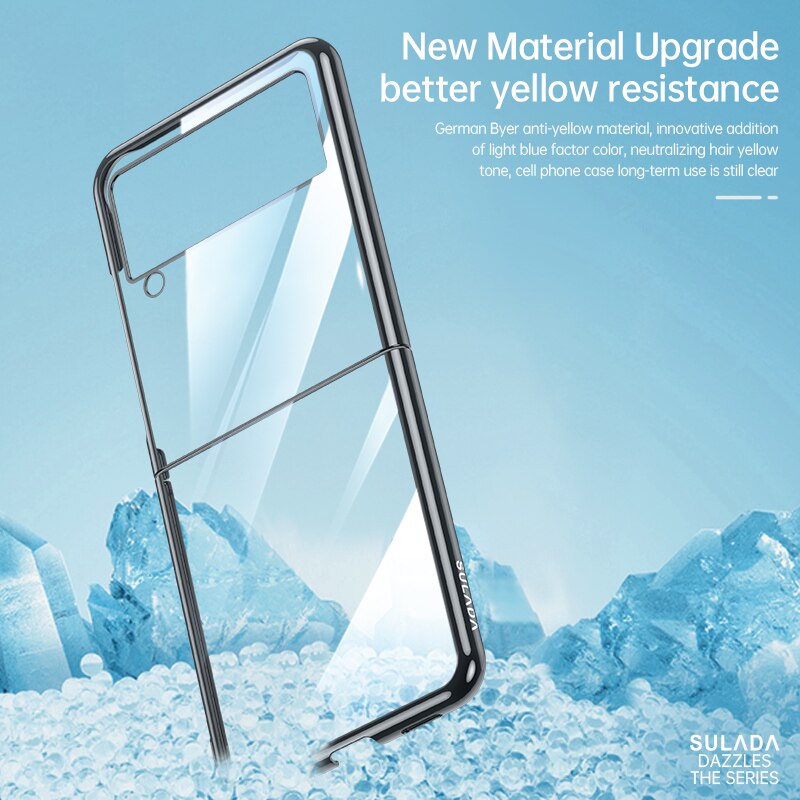 Samsung Z Flip 4 Case SULADA Dazzling For Flip 4 Flip 3 Electroplating Up and Down Straight Edge Hard Shell