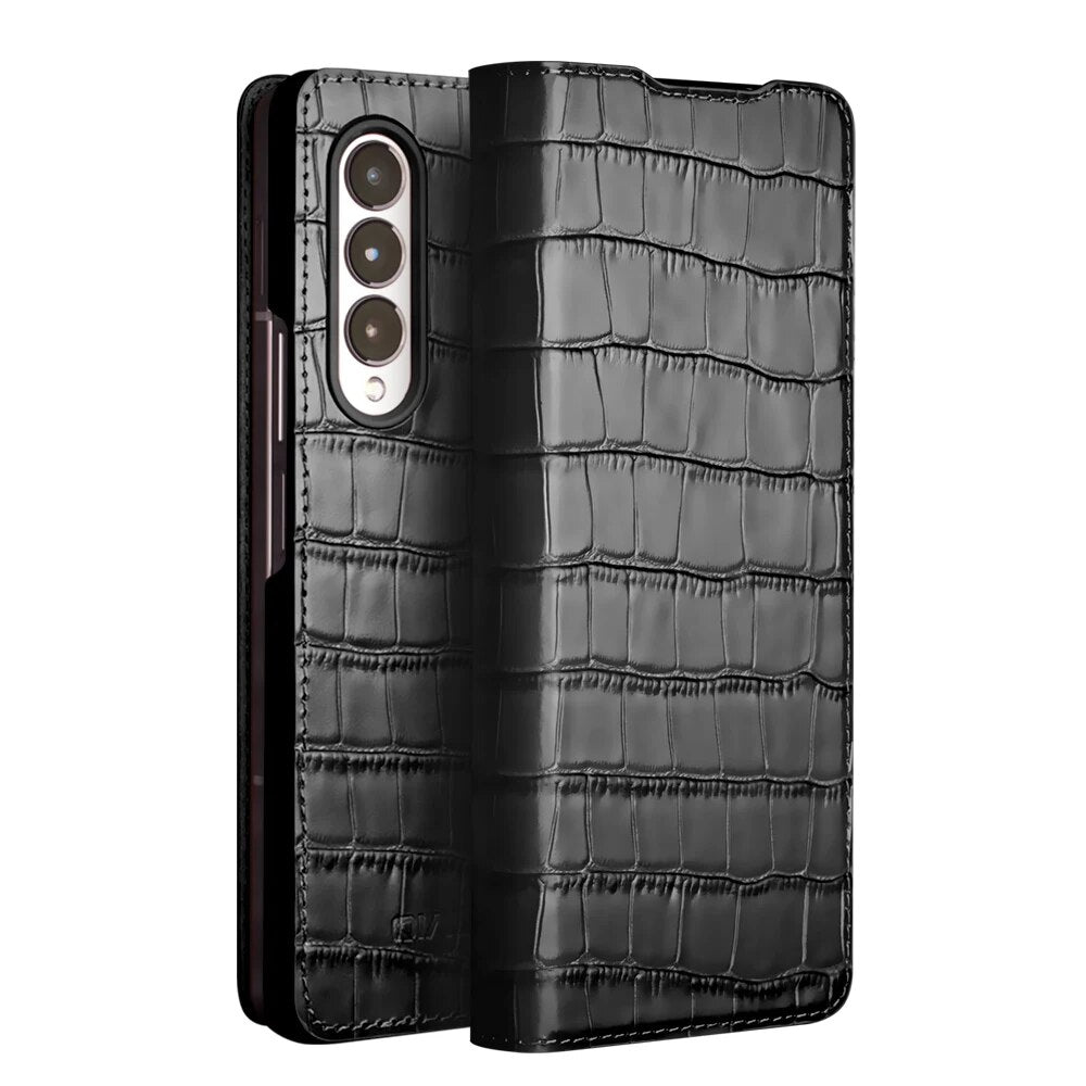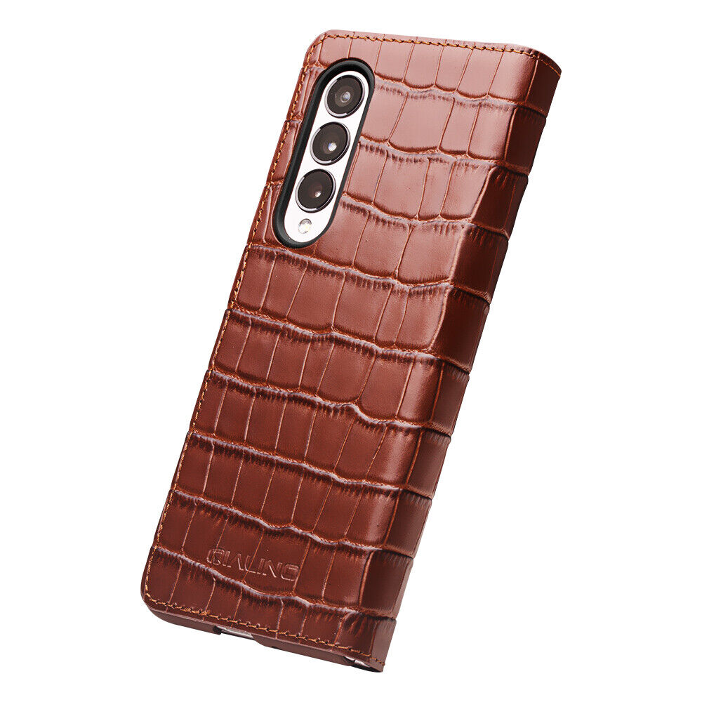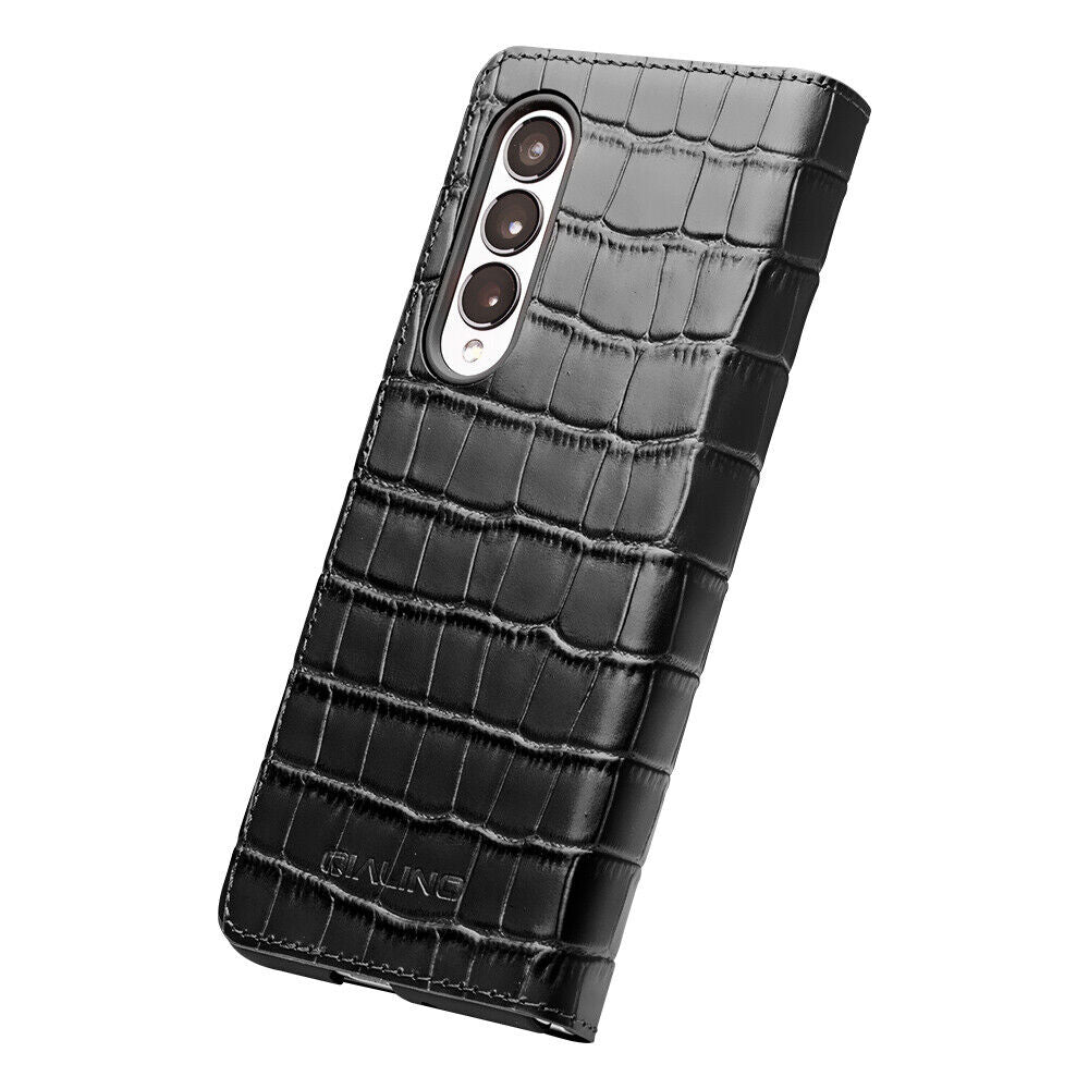 QIALINO Case for Samsung Fold6 5 Fall Proof Mobile Cover for Galaxy Z Fold5 Leather Protective Case Fashion Light Luxury Business