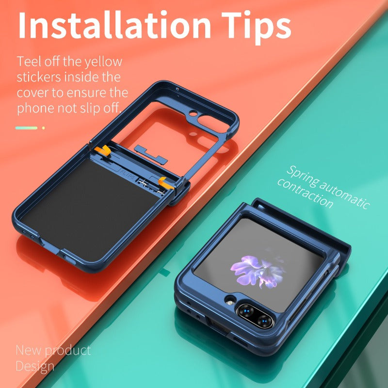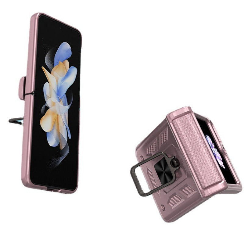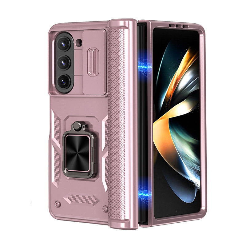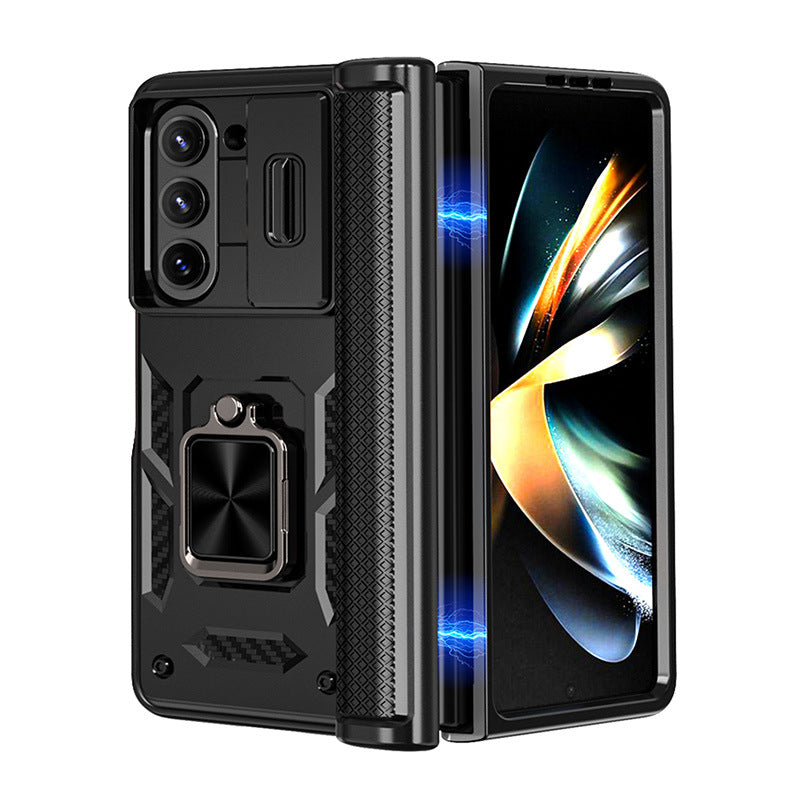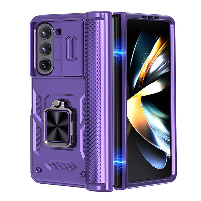 Stay stylish and secure with this Finger Ring Holder Phone Case For Samsung, designed with a slide window and ring holder for added convenience. Compatible with the Samsung Galaxy Z Flip 5 and Z Fold 5, it's the perfect way to protect your phone while keeping it handy.