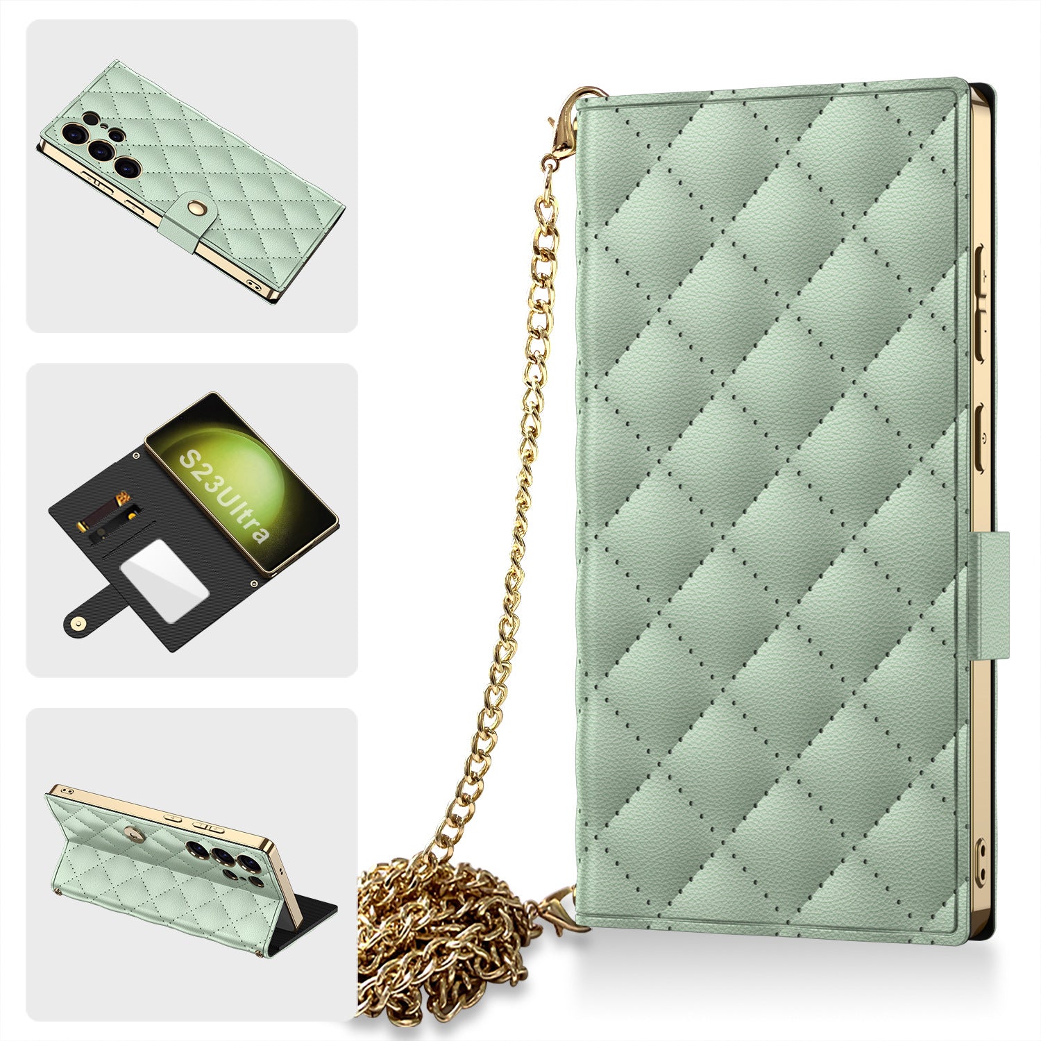 Flip PU Leather Wallet Case With Gold Chain Strap For Samsung Galaxy S25 S24