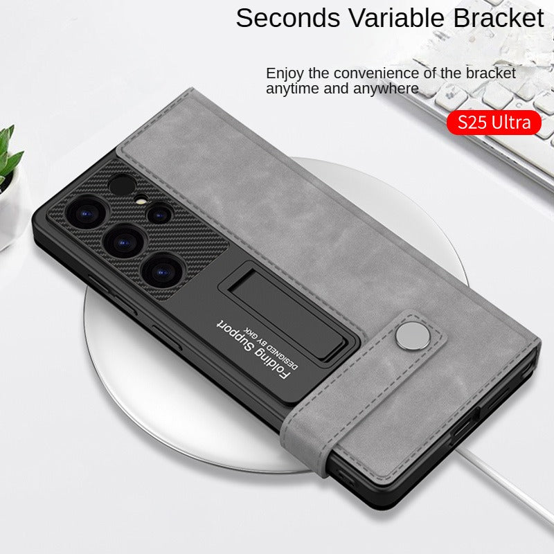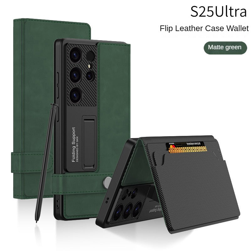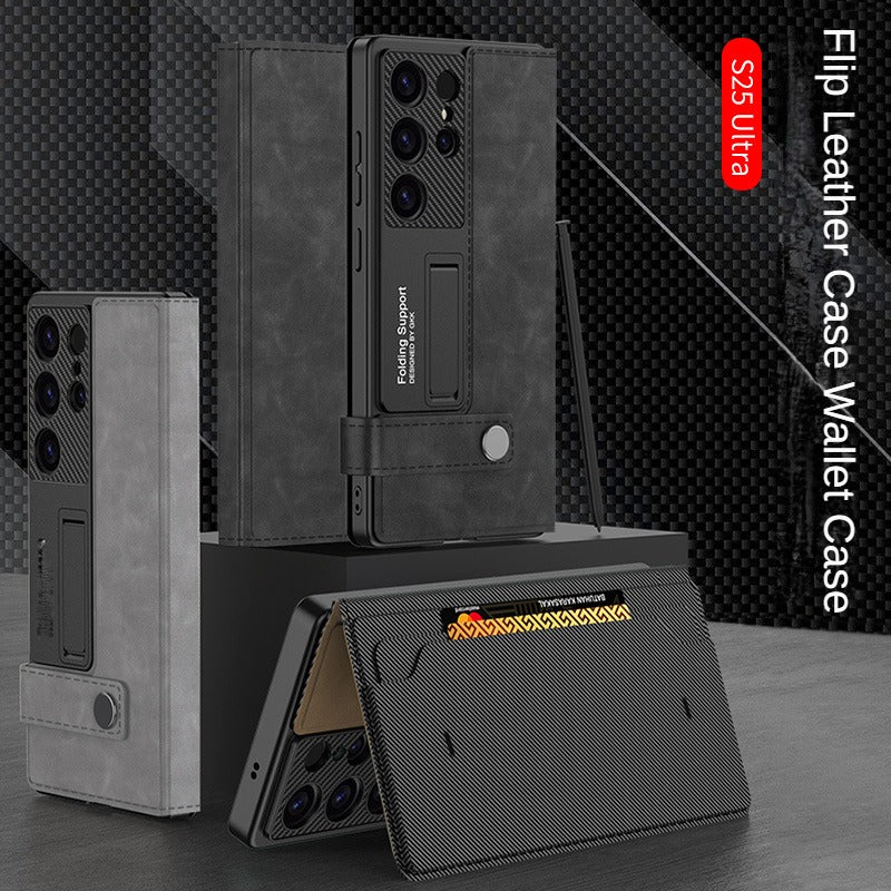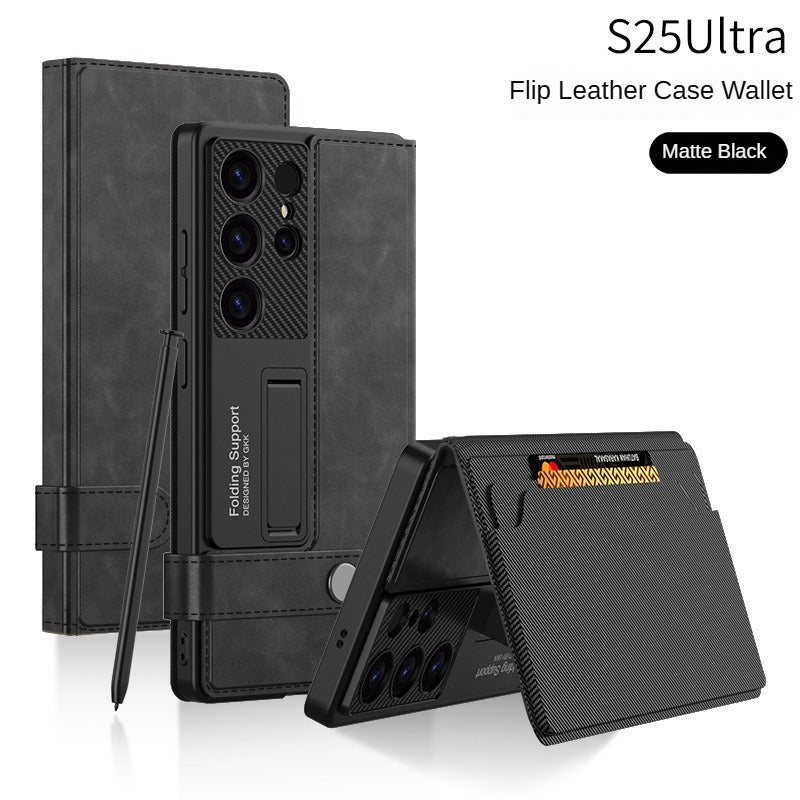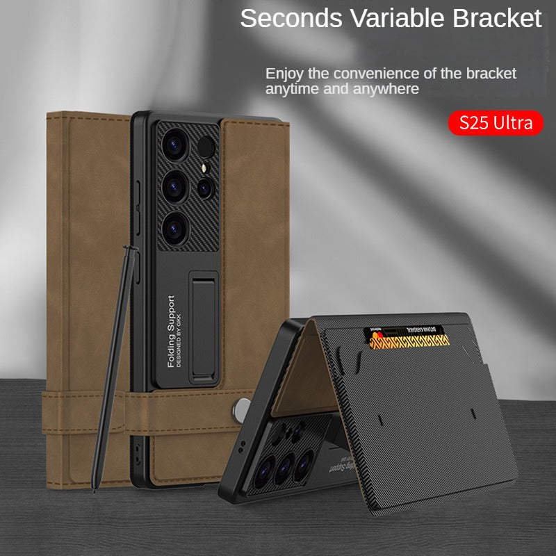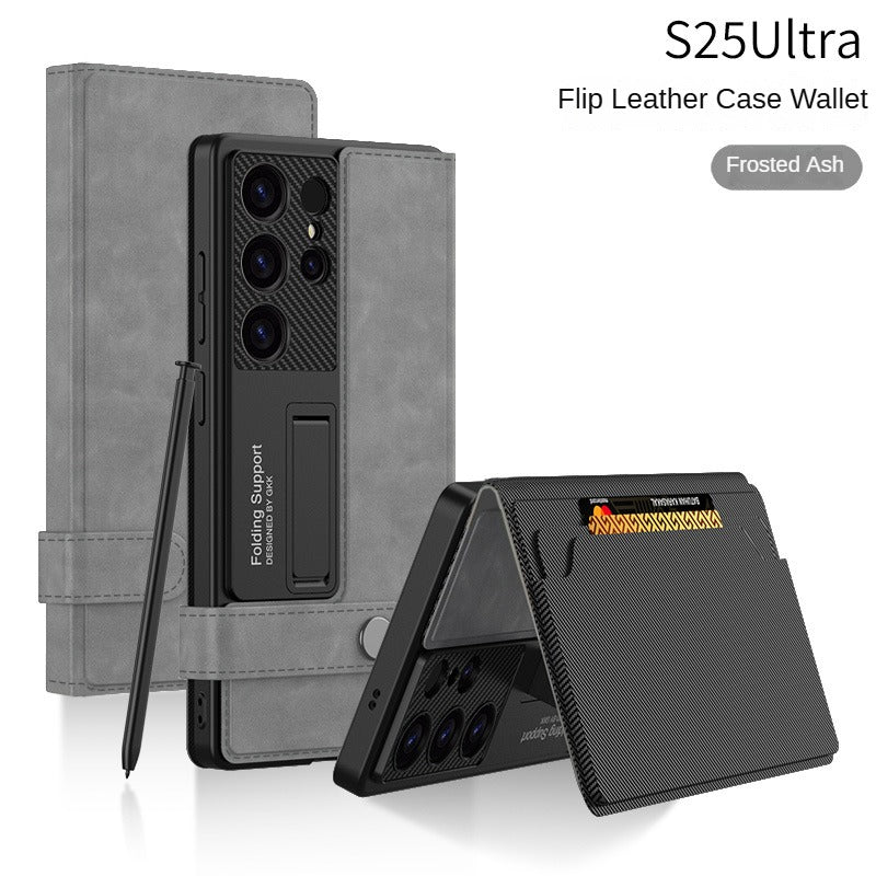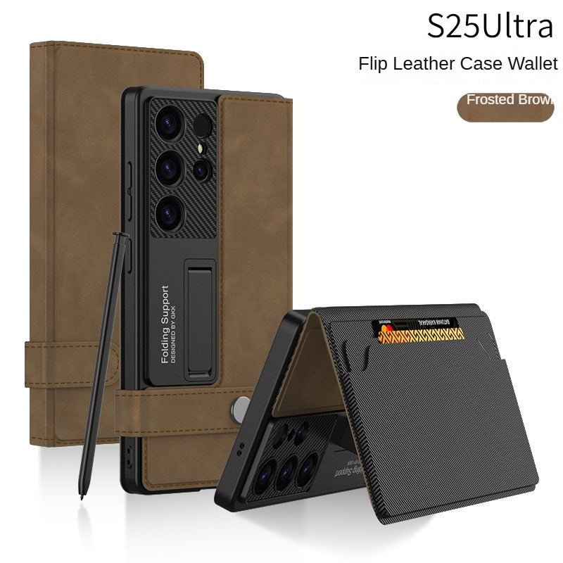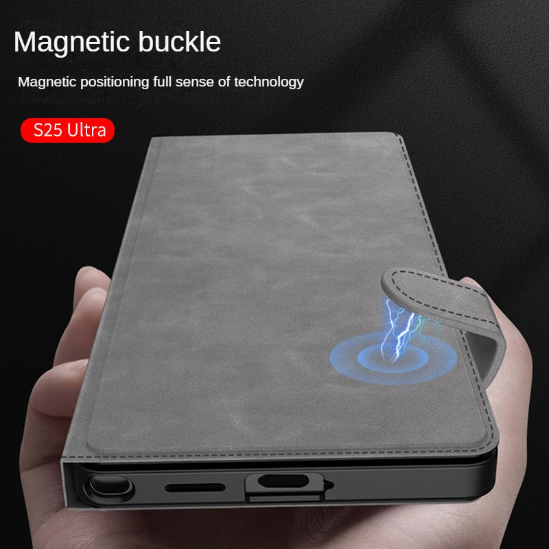 Luxury Matte Leather Bracket Flip Card Pocket Case for Samsung Galaxy S25 Ultra Folding Holder Magnetic Buckle Cover