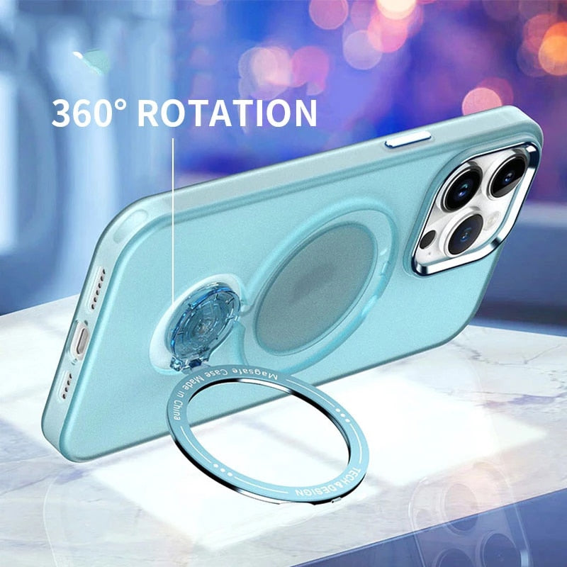 Foldable Ring 360° Rotation Magnetic Stand Matte Phone Case For iPhone