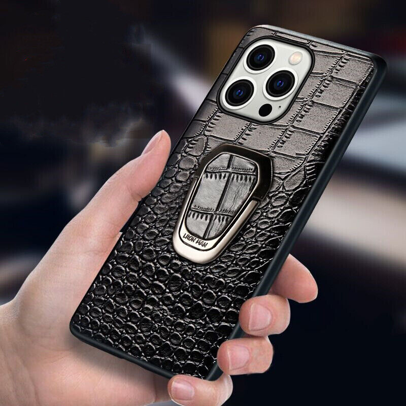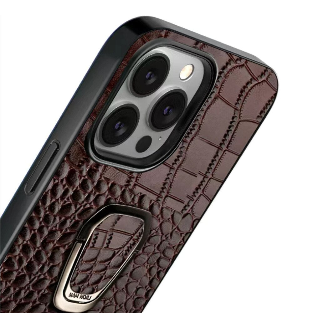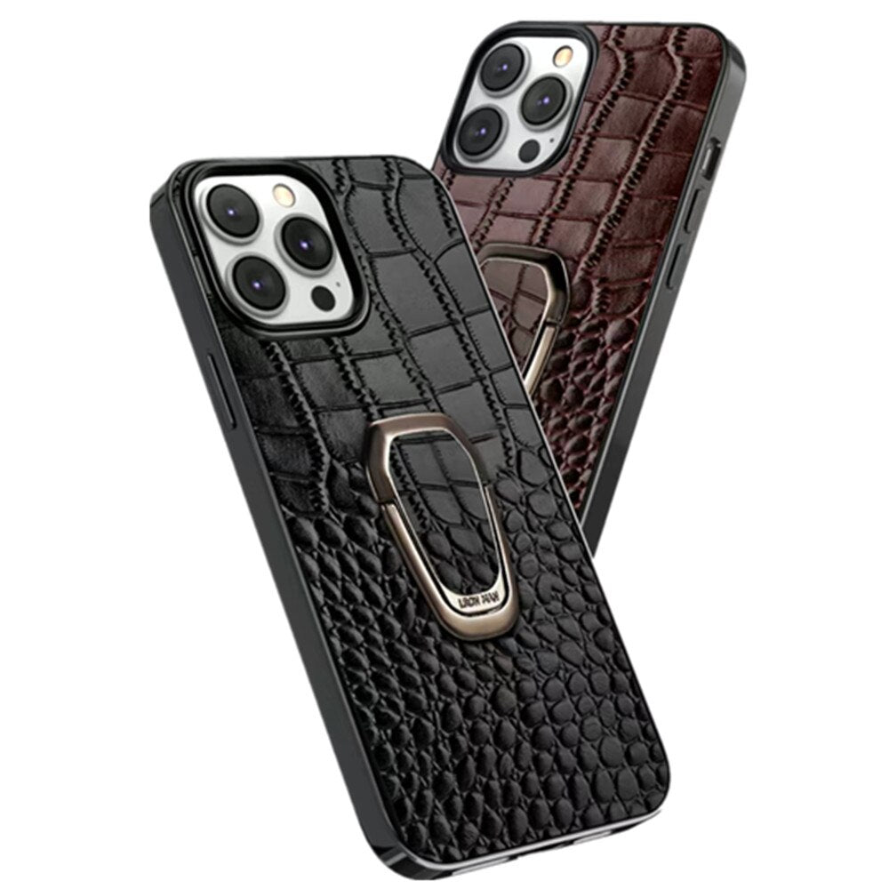 Genuine Leather Phone Case With Metal Ring Bracket For iPhone