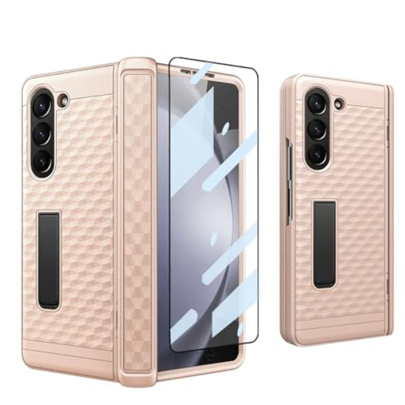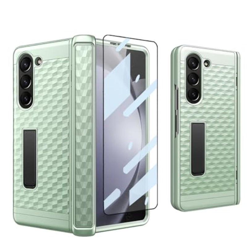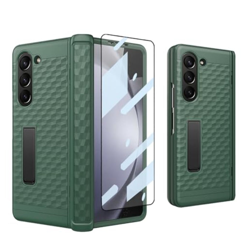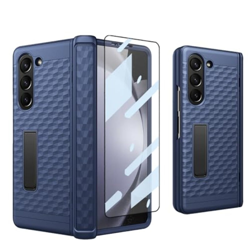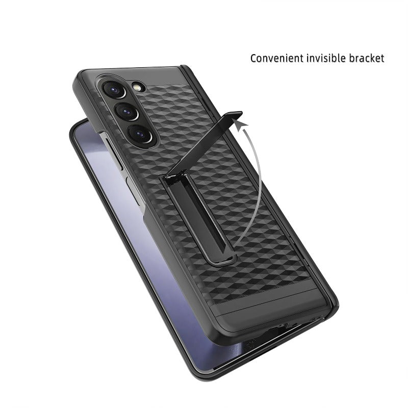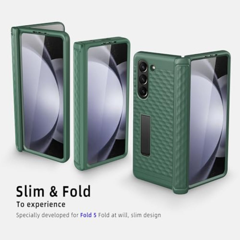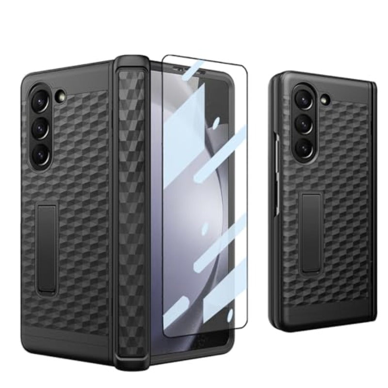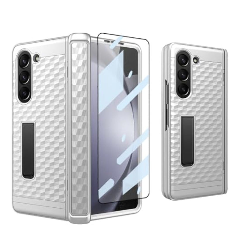 Galaxy Z Fold 5 Hinged Case with Stand for Samsung Z Fold 5 2023 Shockproof Hard Case with Front Screen Protector Phone Case Bumped Stylish Non-Slip Cover