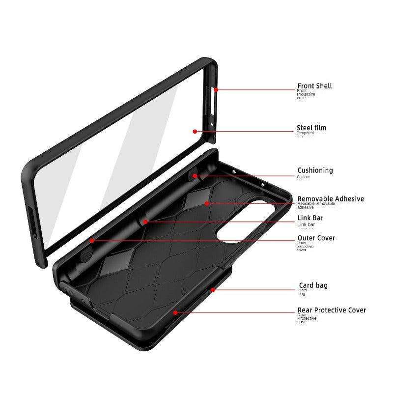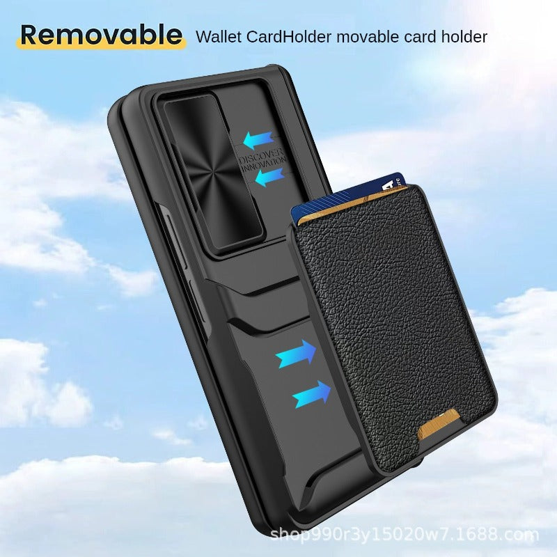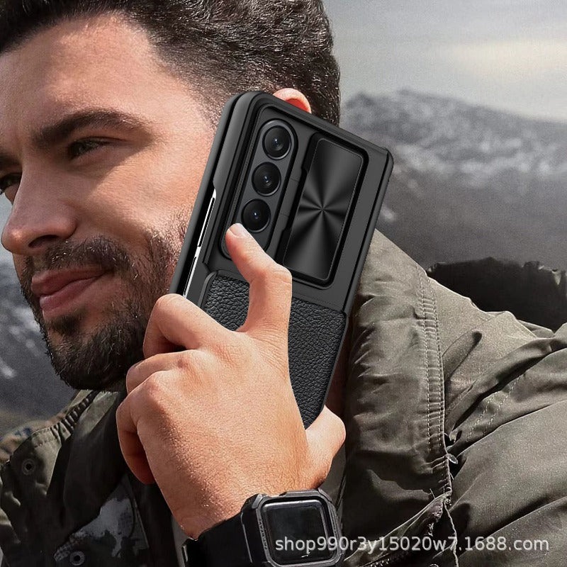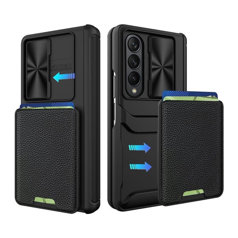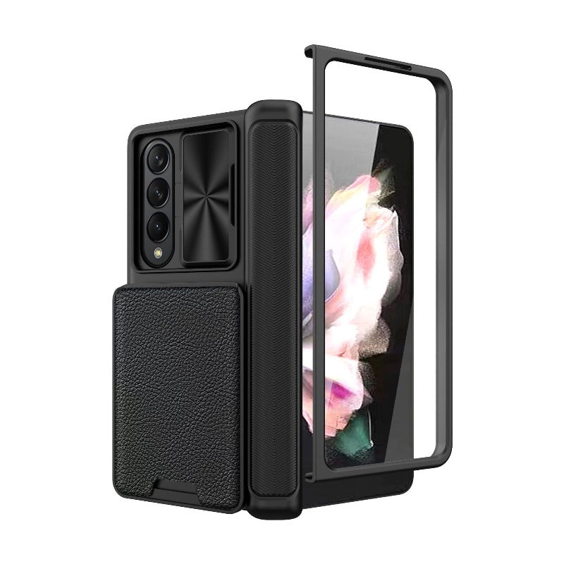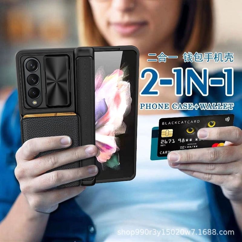 This Hinged Magnetic Card Wallet Stand Holder Phone Case is designed to provide premium protection for your Samsung Galaxy Z Fold. It boasts a hinged coverage phone case along with a half-wrapped case and a slide lens protective cover, all of which are designed to safeguard your device from shock and drops. Rest assured your phone is protected with this robust phone case.
