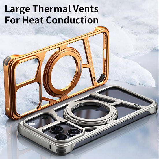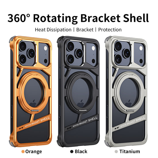 Aluminium Alloy Metal Case For iPhone 17 Pro Max 16 Rotation Bracket Hollow Out Magnetic Metal Shockproof Cover