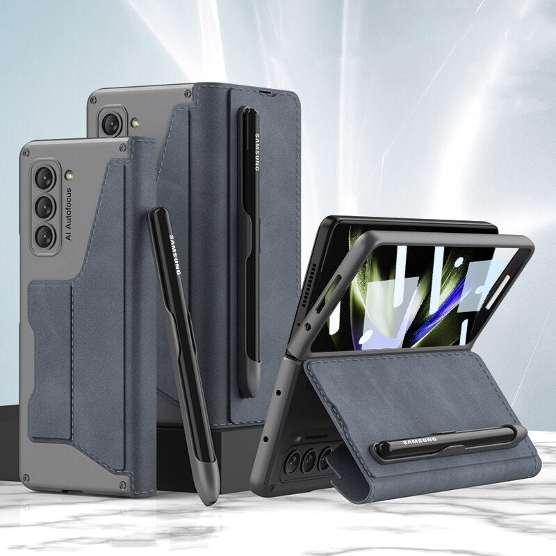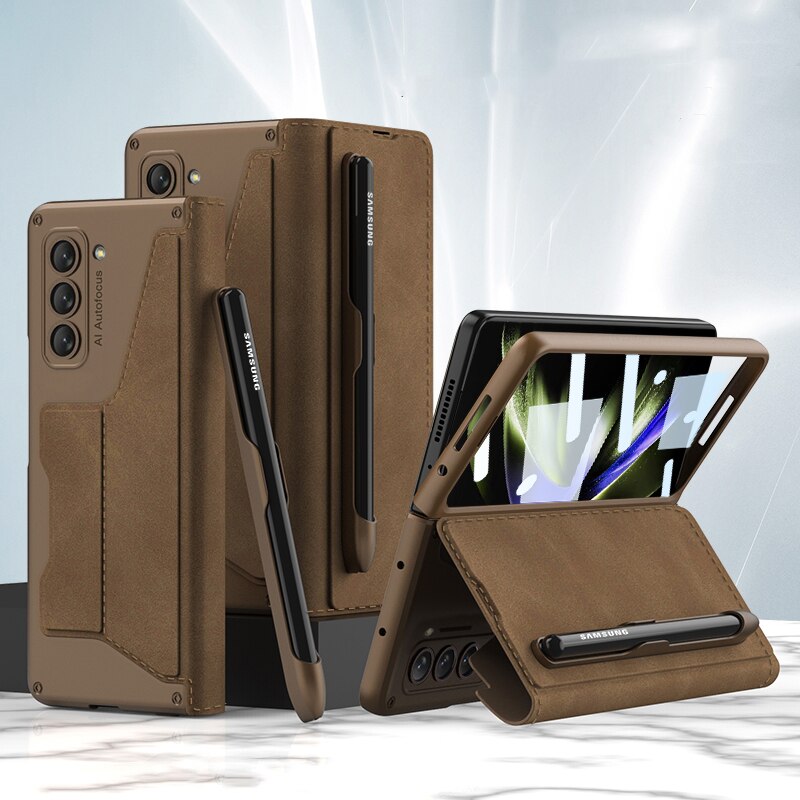 Leather Armor Phone Case With Pen Slot And Card Holder For Samsung Galaxy Z Fold 5 4