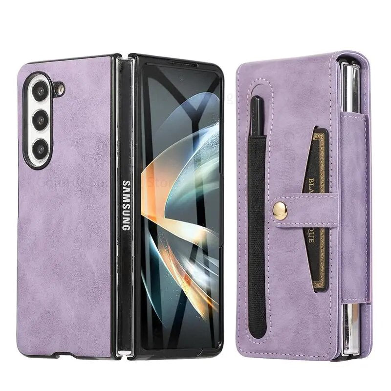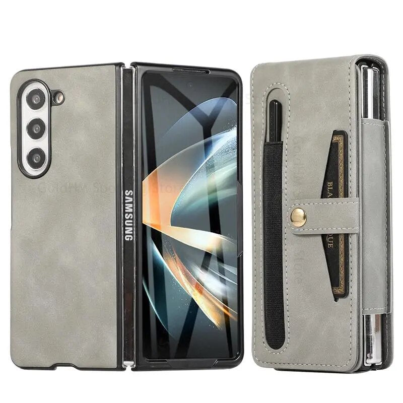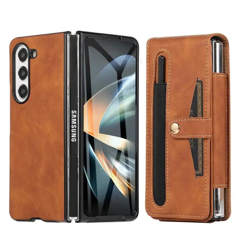 Leather Magnetic Flip Card Wallet Phone Case with Pen For Samsung Z Fold 5