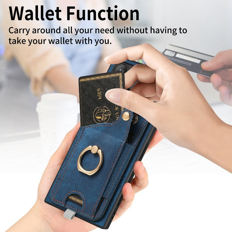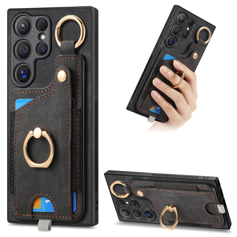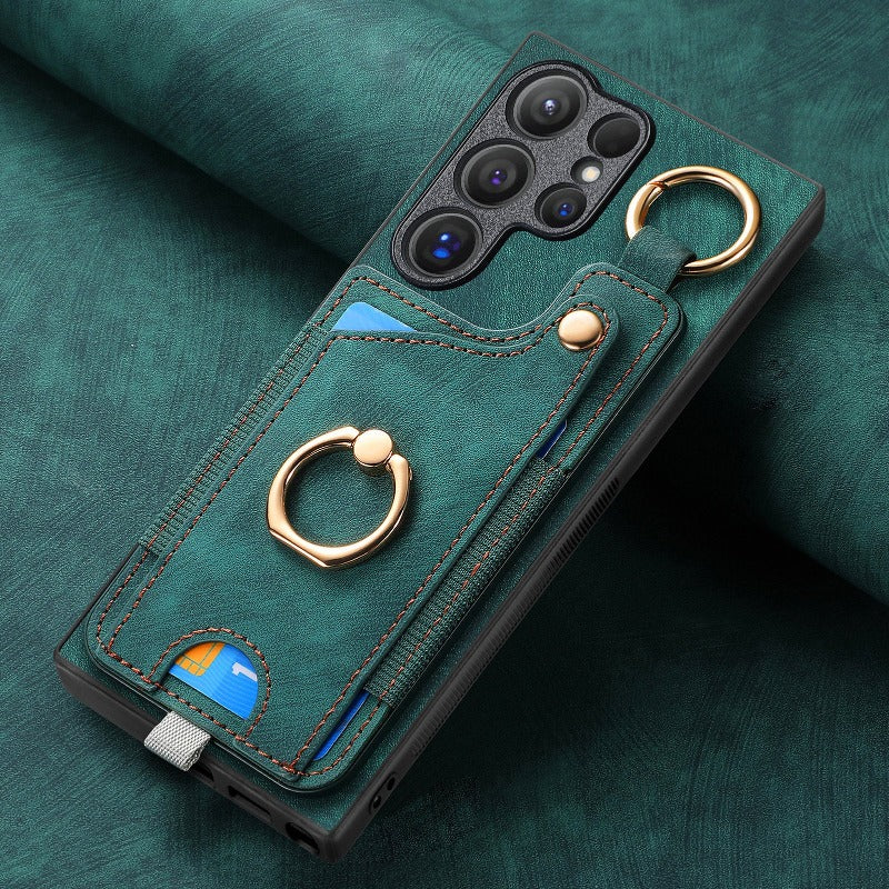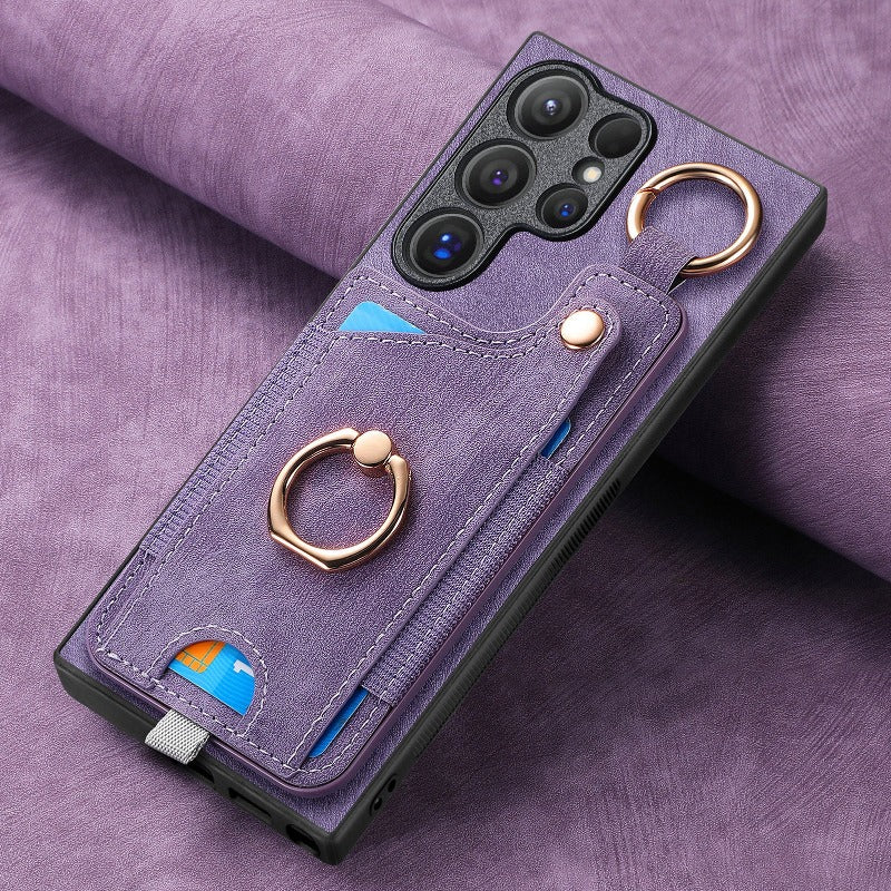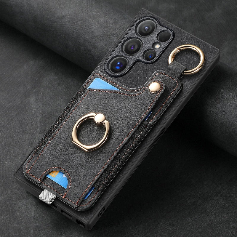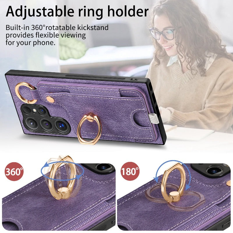 Leather Ring Holder Phone Case With Wallet Card Slot For Samsung Galaxy S24 S23
