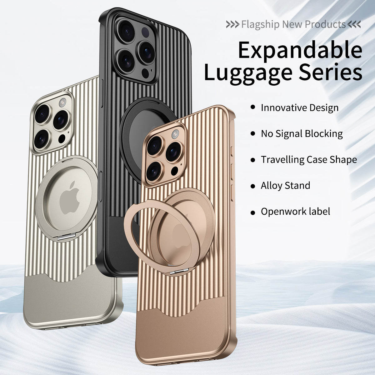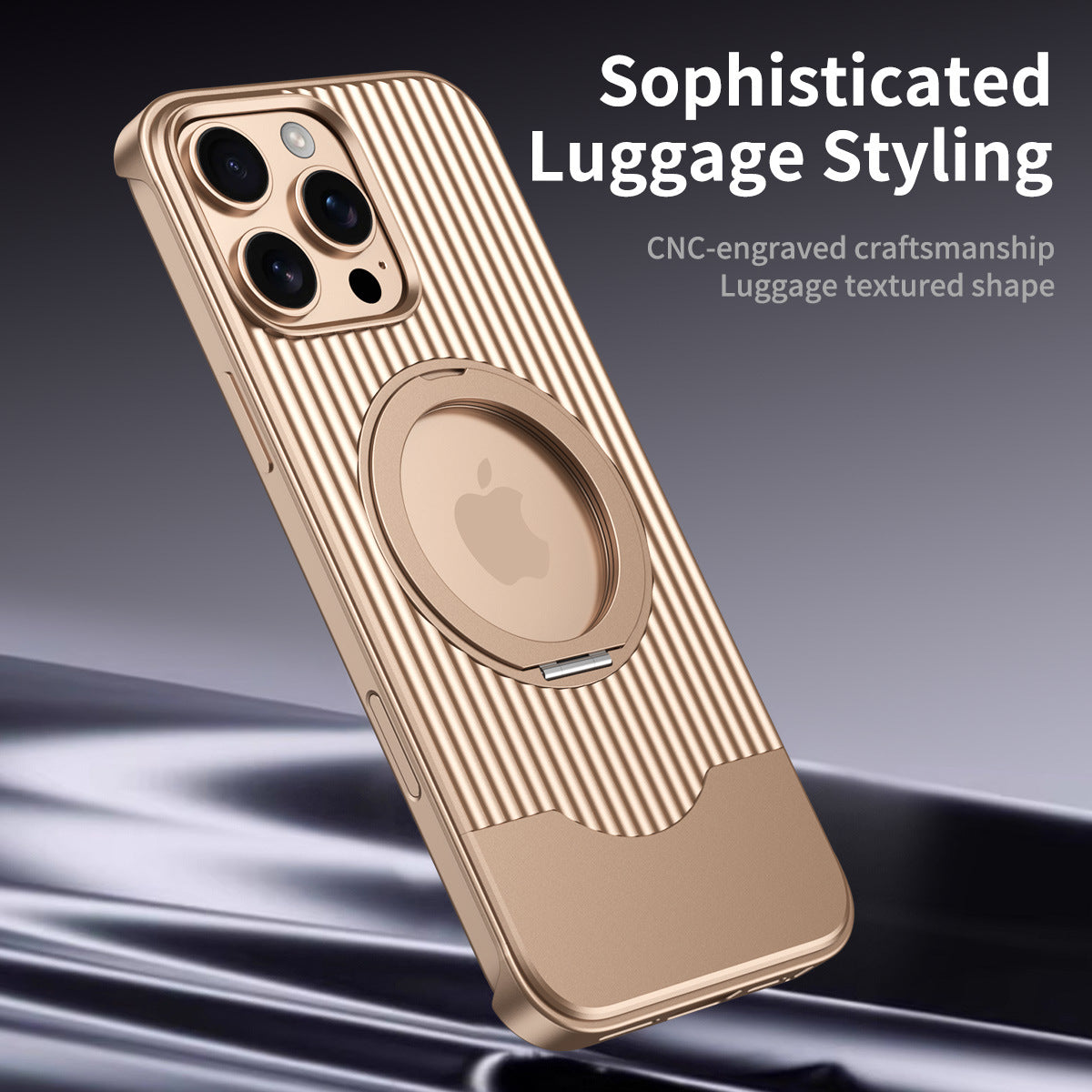 Luggage Style 360 Rotation Magnetic Wireless Charging Kickstand Aluminum Alloy Metal Phone case for iphone 16 Pro Max 15 14 Metal Frameless Cooling Cover
