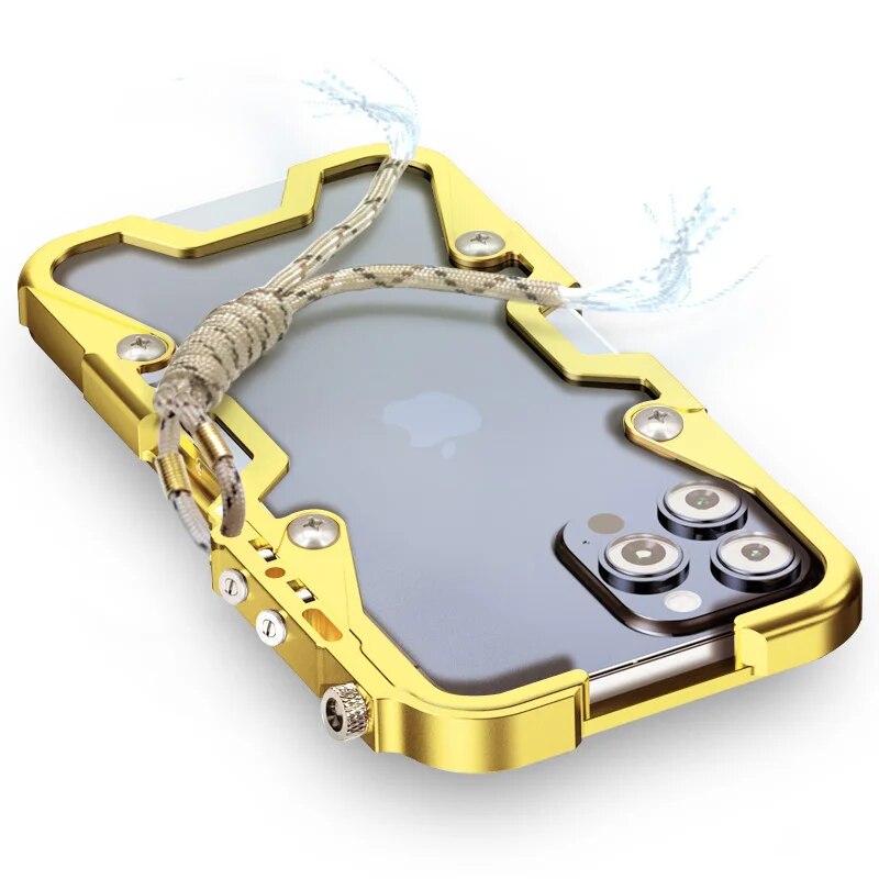 Luxury Aluminum Metal Frame Shockproof Bumper Phone Case With Lanyard For iPhone