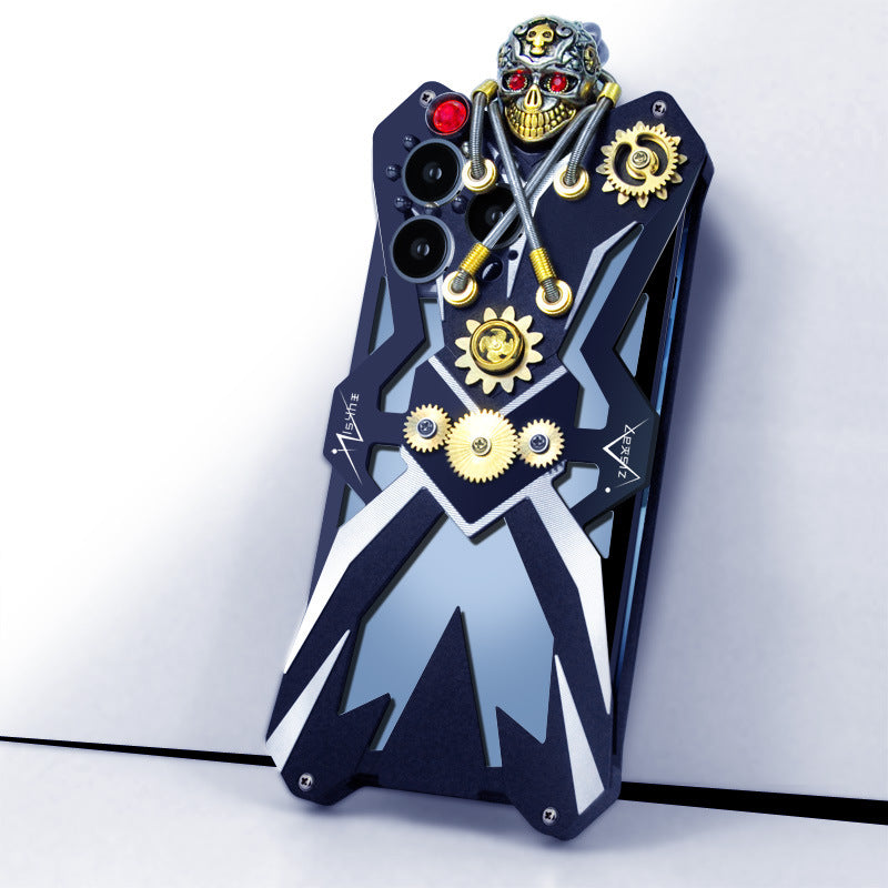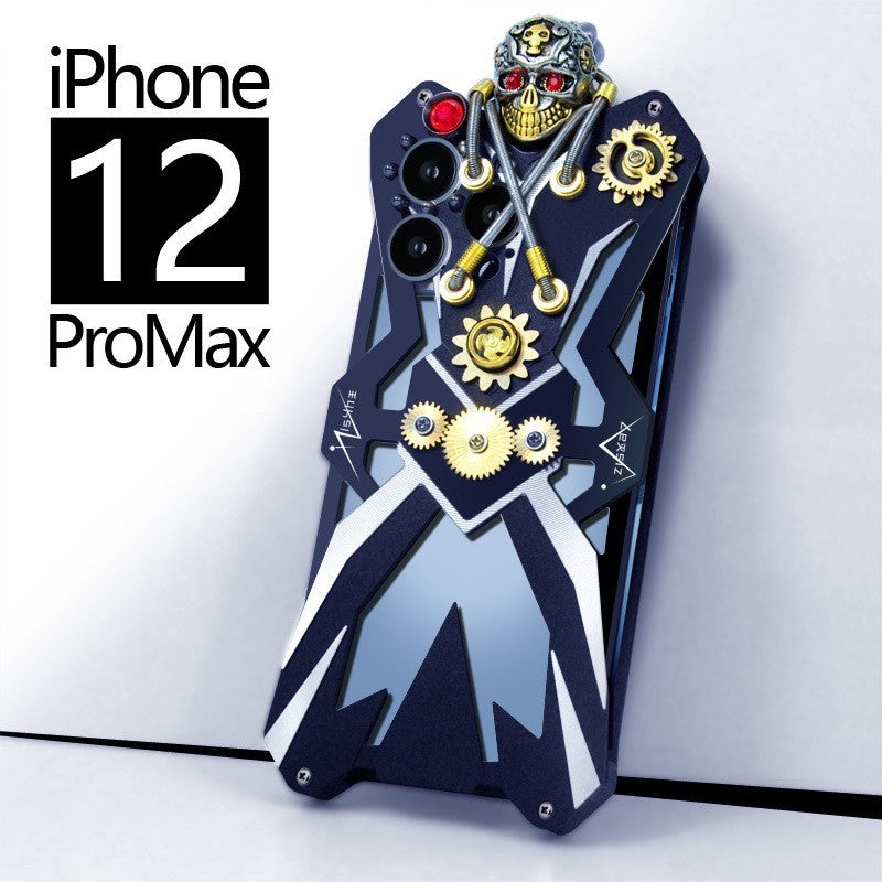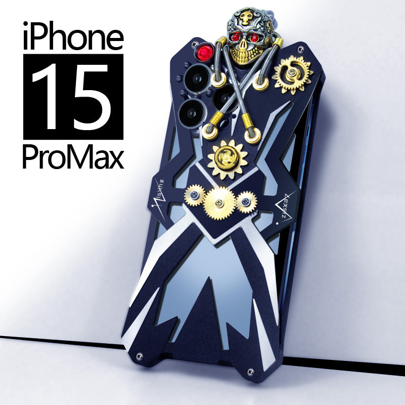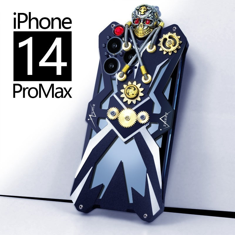 Original Luxury Armor Metal Aluminum Phone Cases For Iphone 15 14 13 Pro Max Cover Mechanical Purely Handmade Skull Case