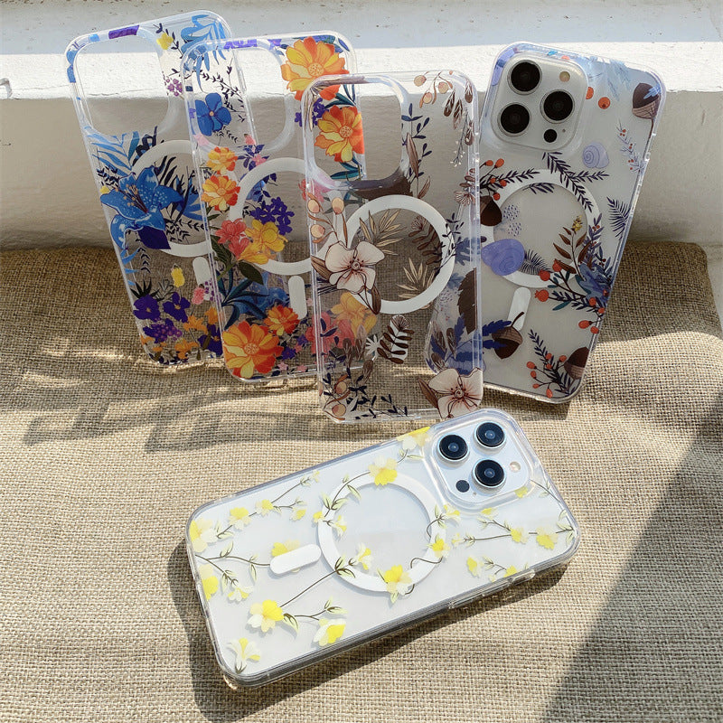 Luxury Flower Magnetic Hard PC Transparent Phone Case For iPhone