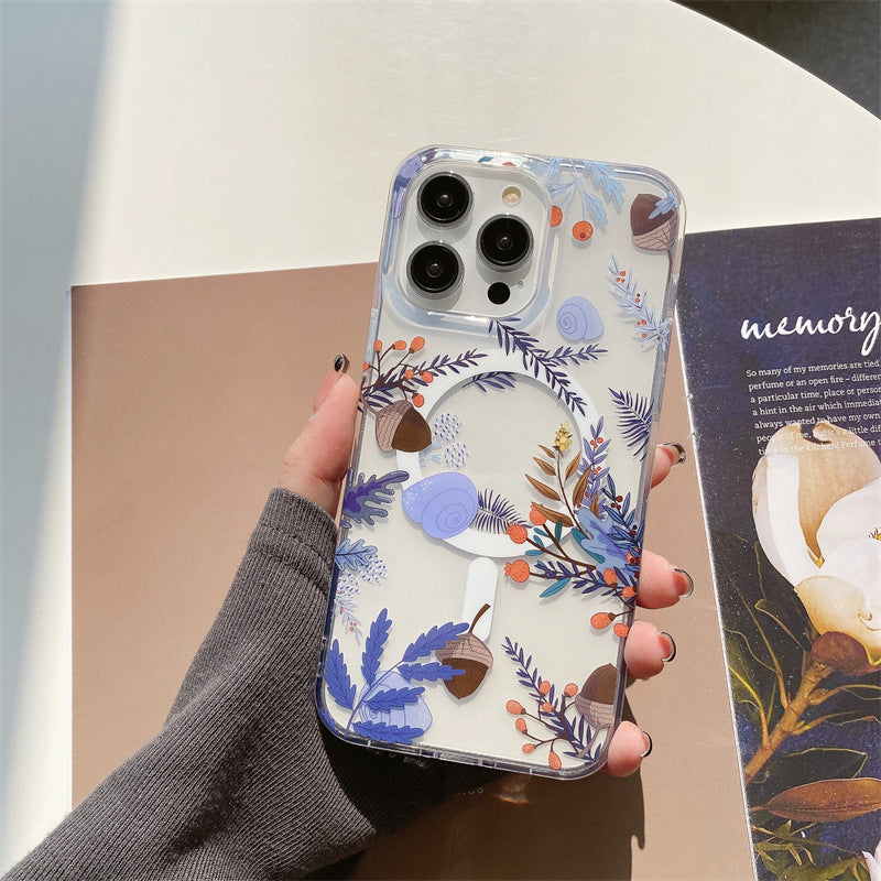 Luxury Flower Magnetic Phone Case For iPhone 15 14 Plus 12 13 Pro Max For Magsafe Hard PC Transparent Back Cover