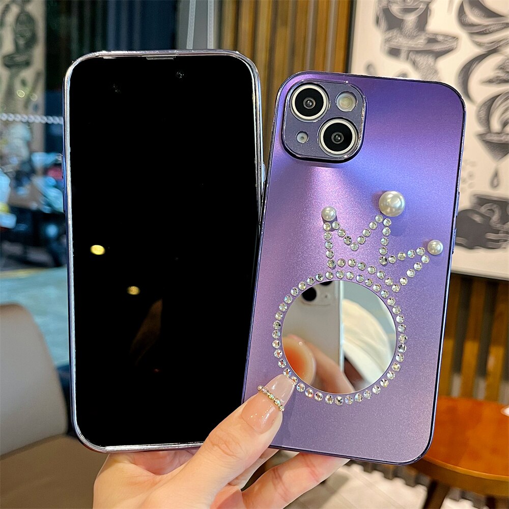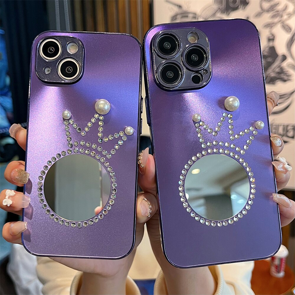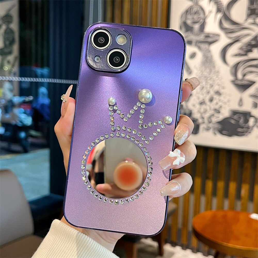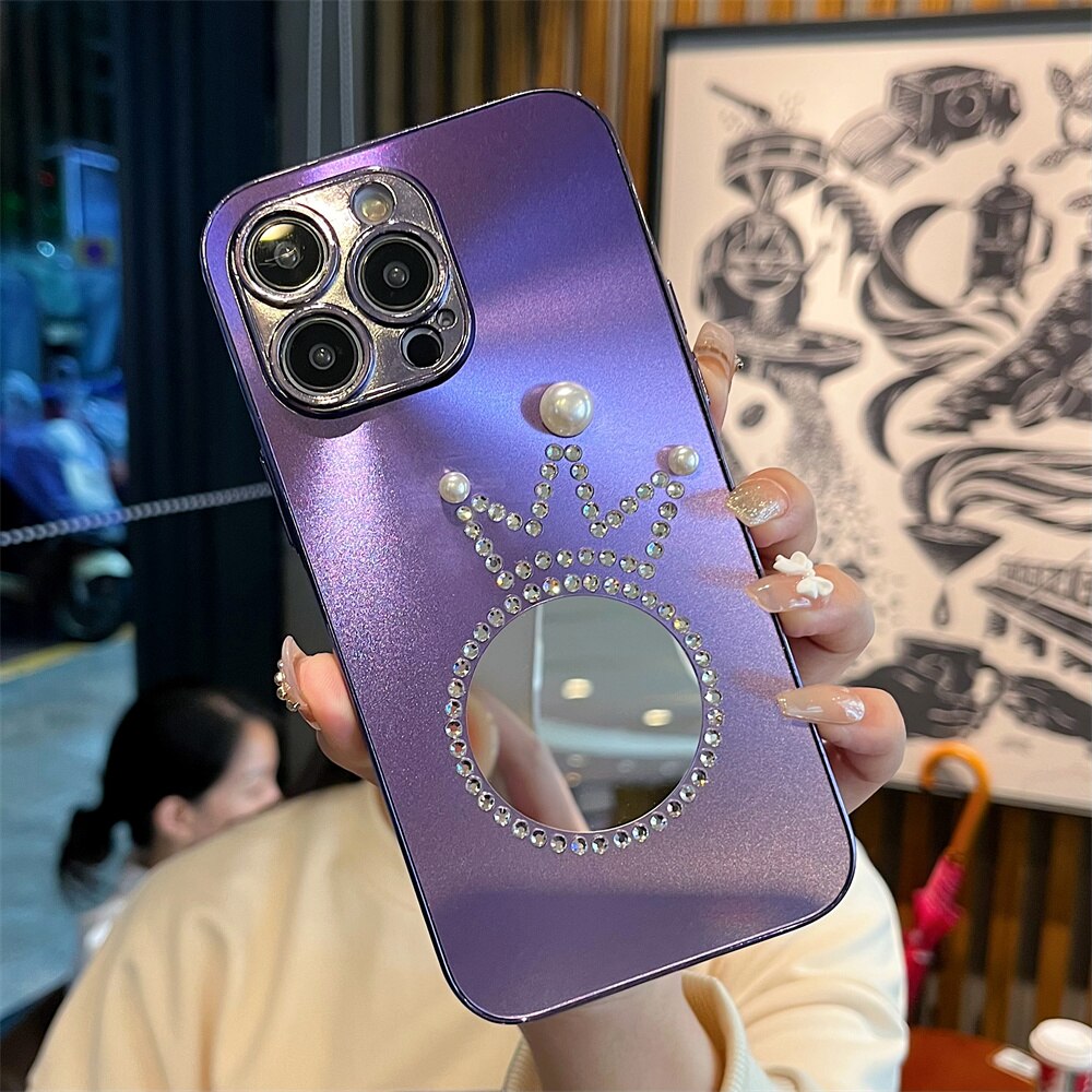 Luxury Glitter Diamond Crown Phone Case With Mirror For iPhone