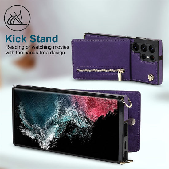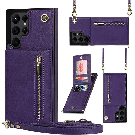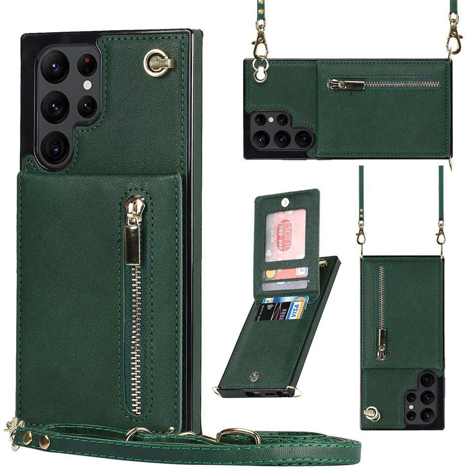 Luxury Leather Zipper Wallet Card Strap Case For Samsung Galaxy S23 S22 S21