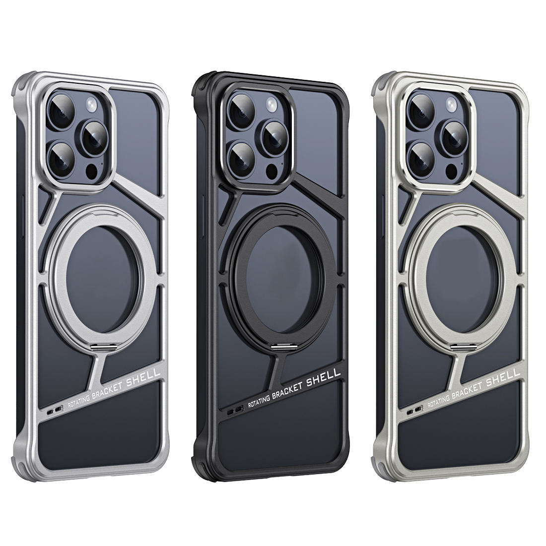 Luxury Metal Frameless 360 Rotating Aluminum Magnetic Finger Ring Stand Phone Case For iPhone 14 15 16 Pro Max Plus Aluminum Alloy Shockproof Phone Cover