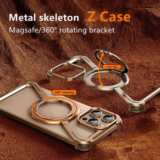 Luxury Z Type Aluminum Frameless Metal Phone Case With Ring Holder Magnetic Kickstand For iPhone